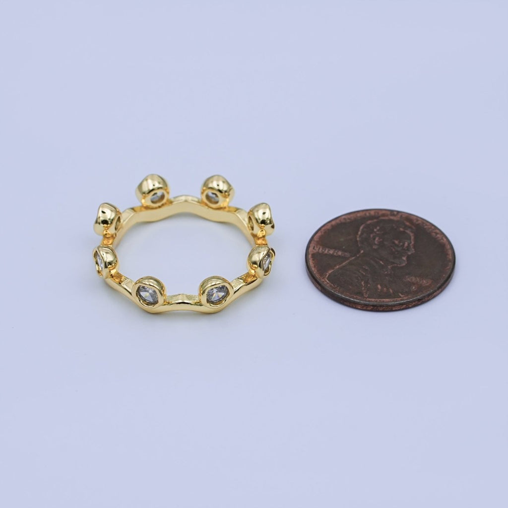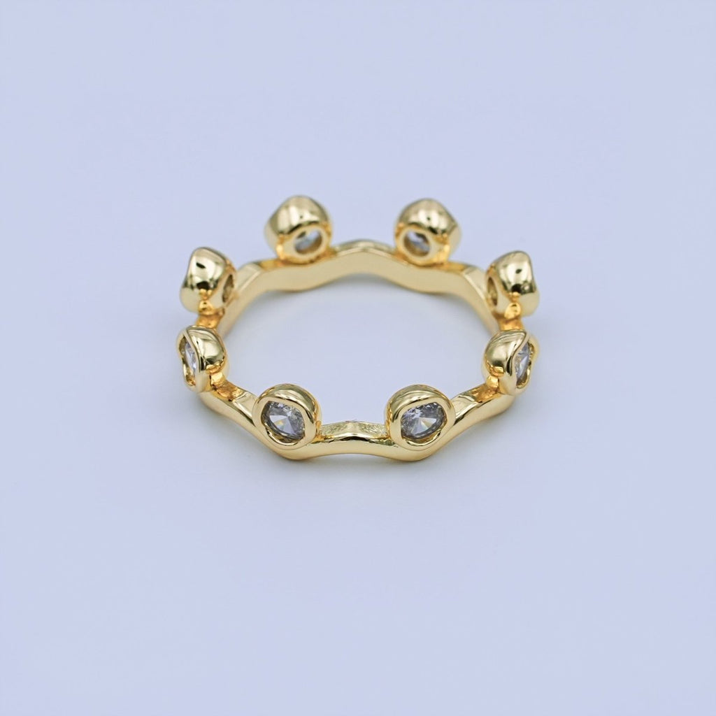 24K Gold Filled Round Clear CZ Wave Stacking Band Ring | O849