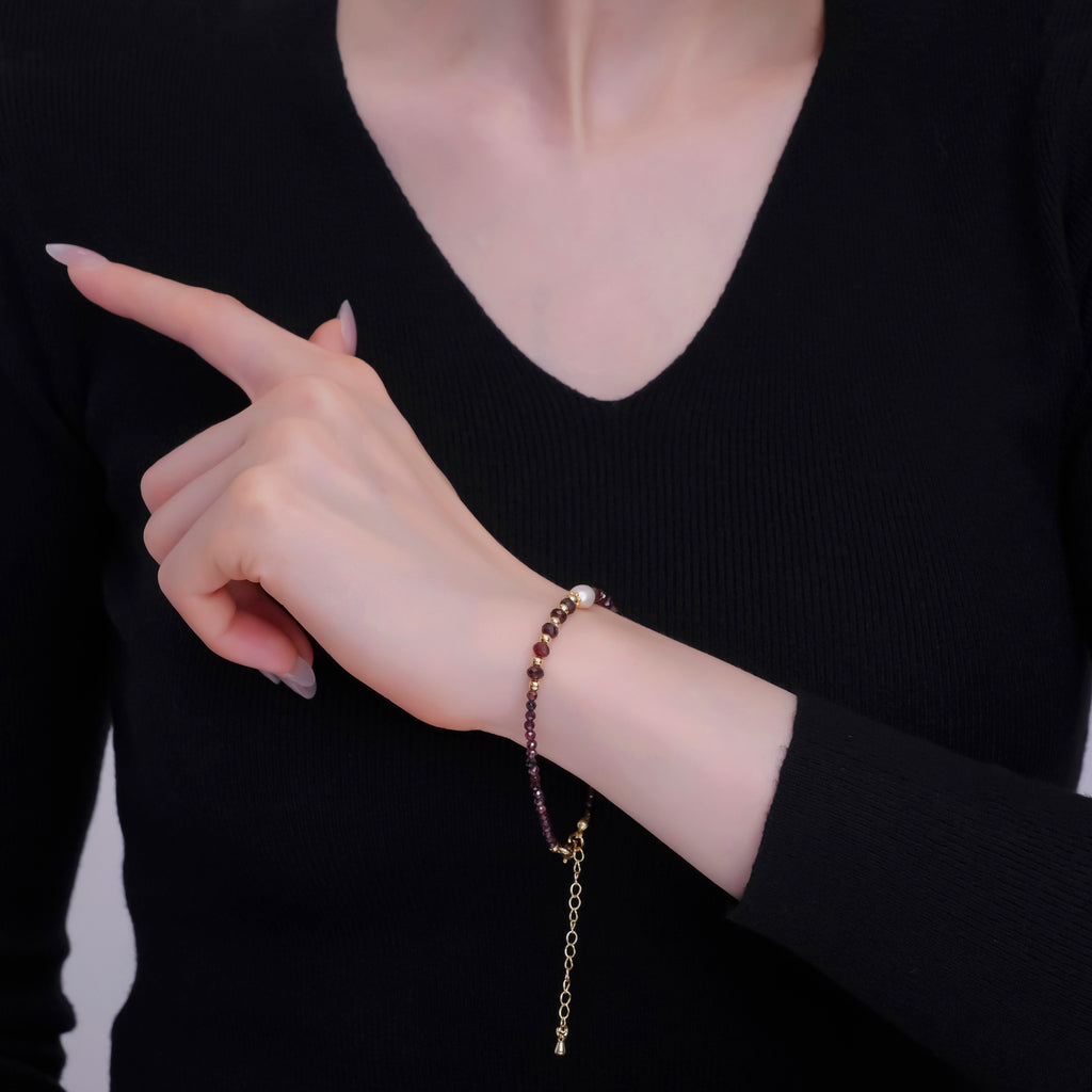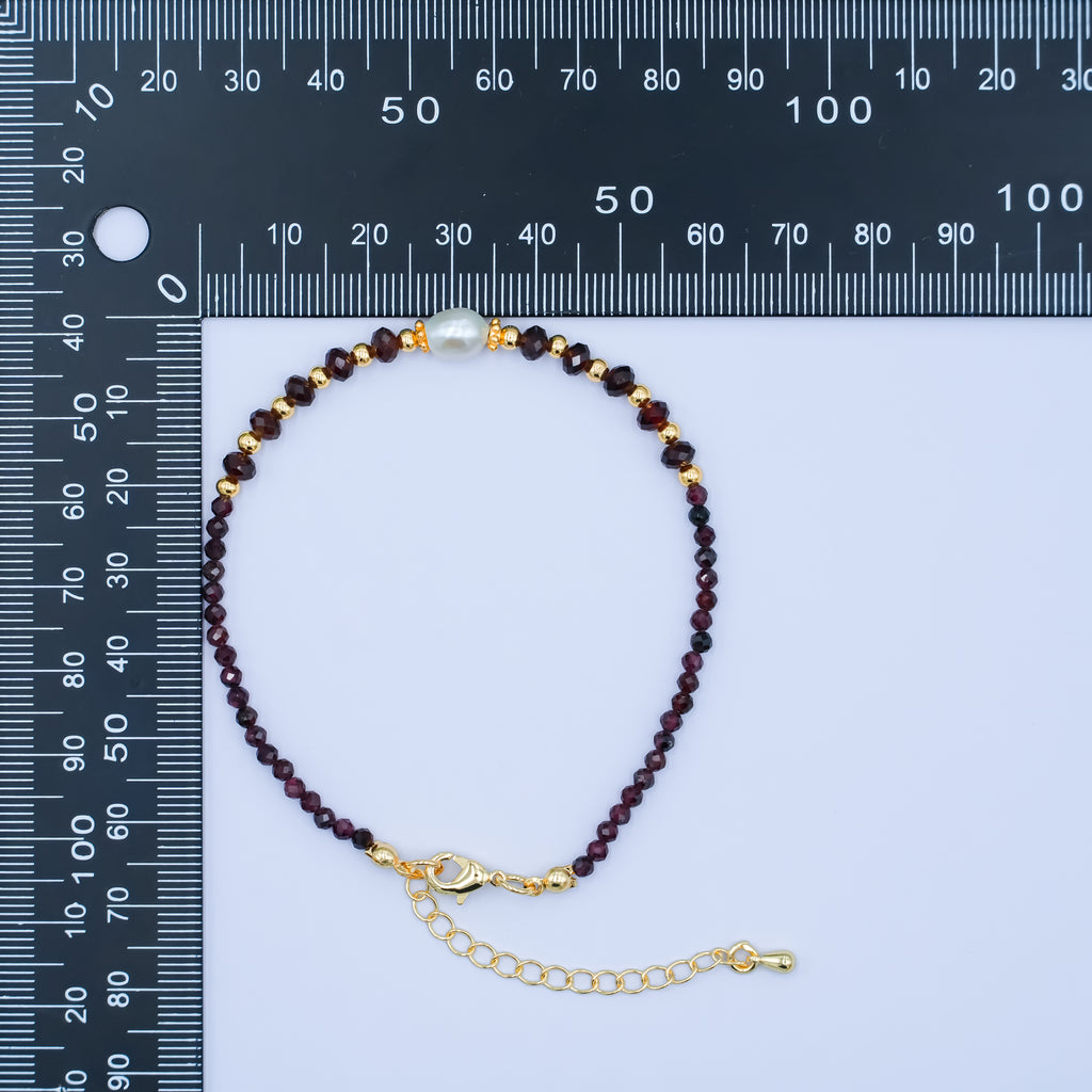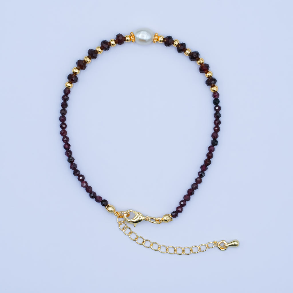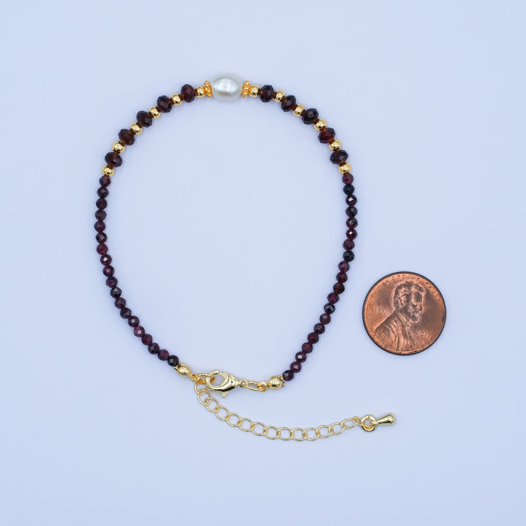 24K Gold Filled Shell Pearl Dark Red Multifaceted Gemstone 7.5 Inch Bracelet | WA-2892