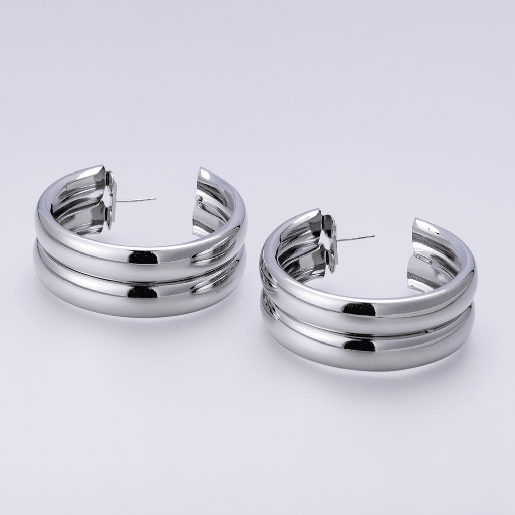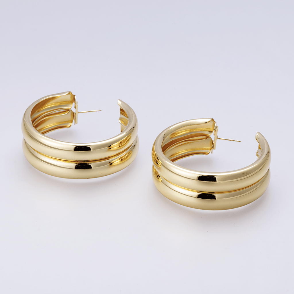 14K Gold Filled 50mm Double Band C-Shaped Hoop Earrings in Gold & Silver | P00422 P00423