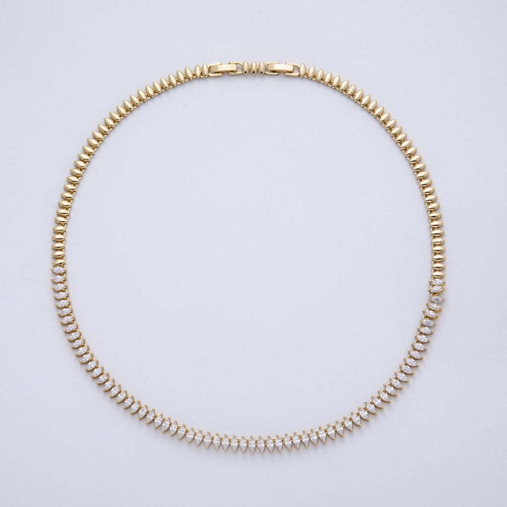 14K Gold Filled 5.5mm Clear Marquise CZ Navette Adjustable 17.5 Inch Necklace | WA-4093