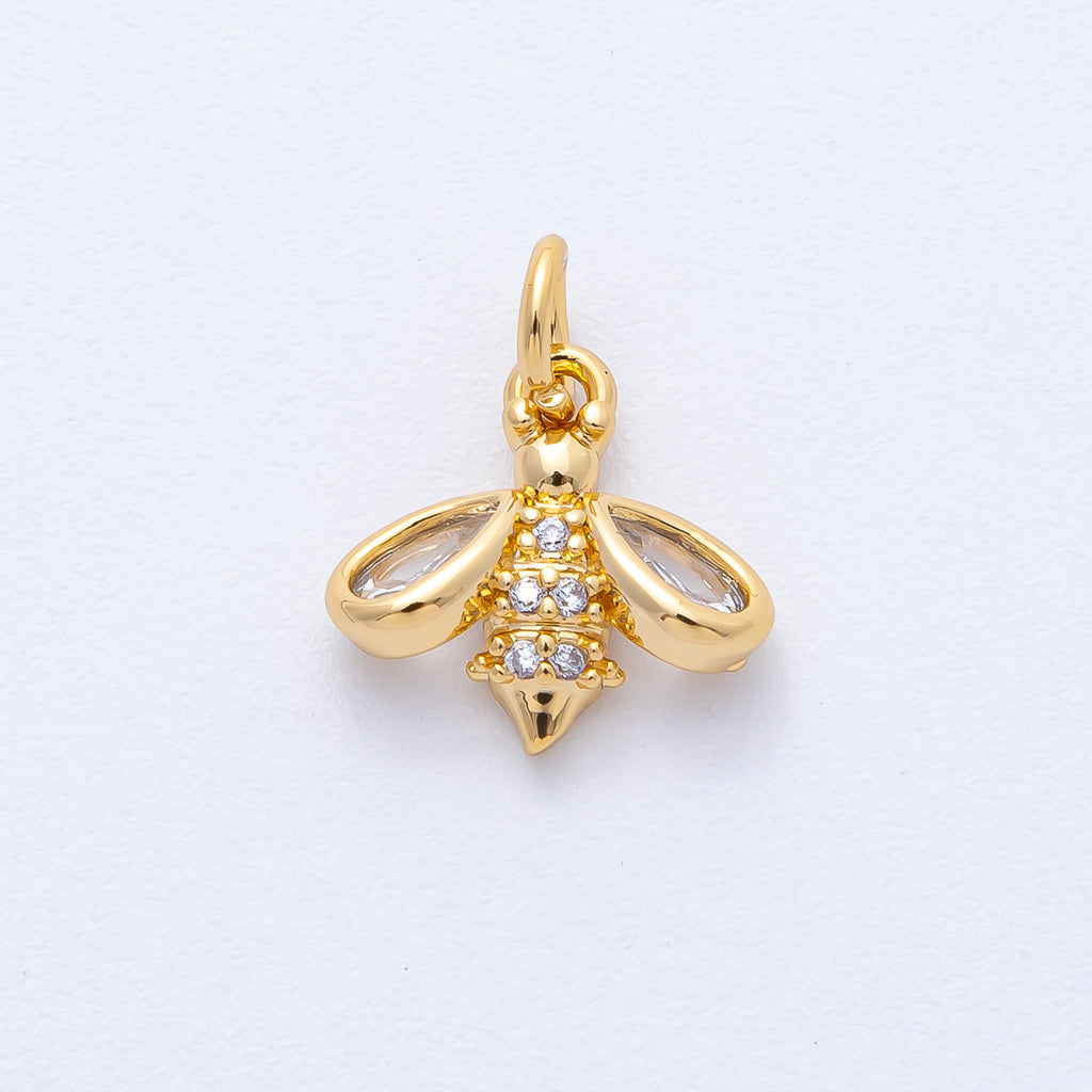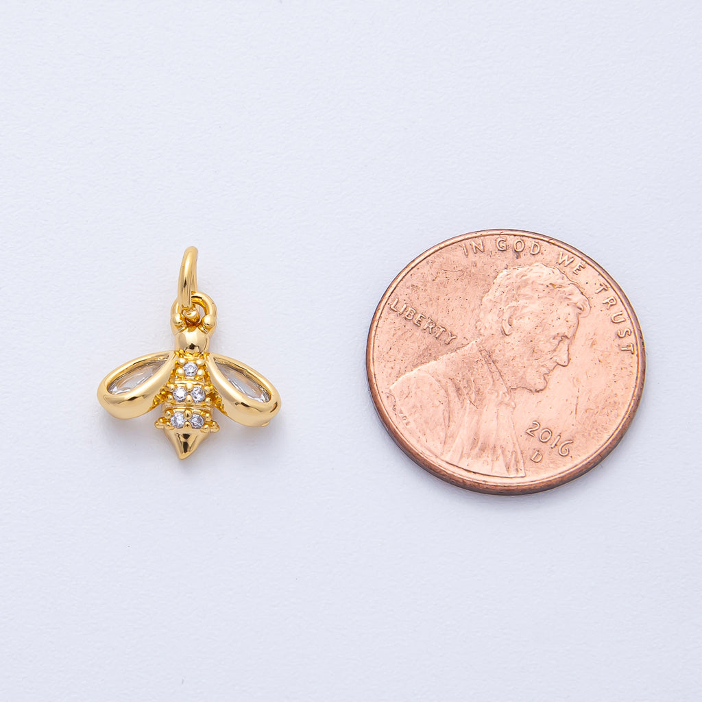 18K Gold Filled 12mm Micro Paved CZ Bumble Bee Insect Mini Charm | AK165
