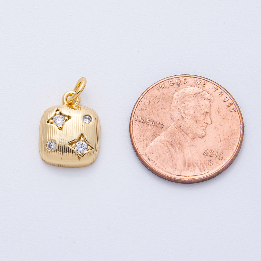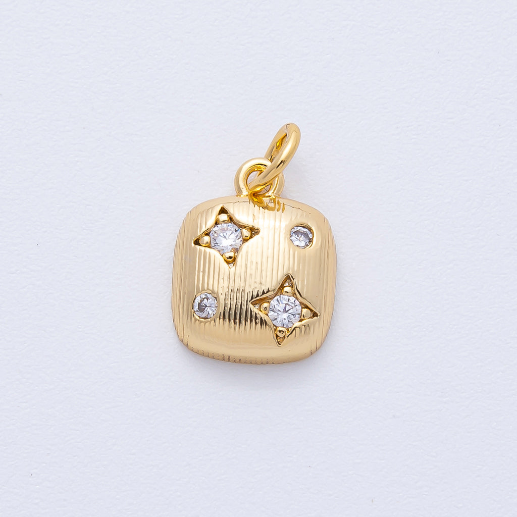 18K Gold Filled 13mm Clear CZ Star Dotted Ribbed Square Charm | AK157