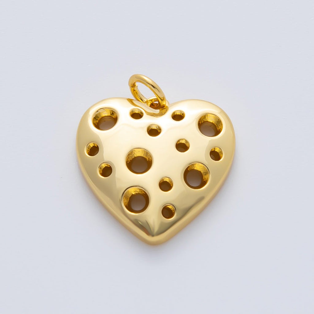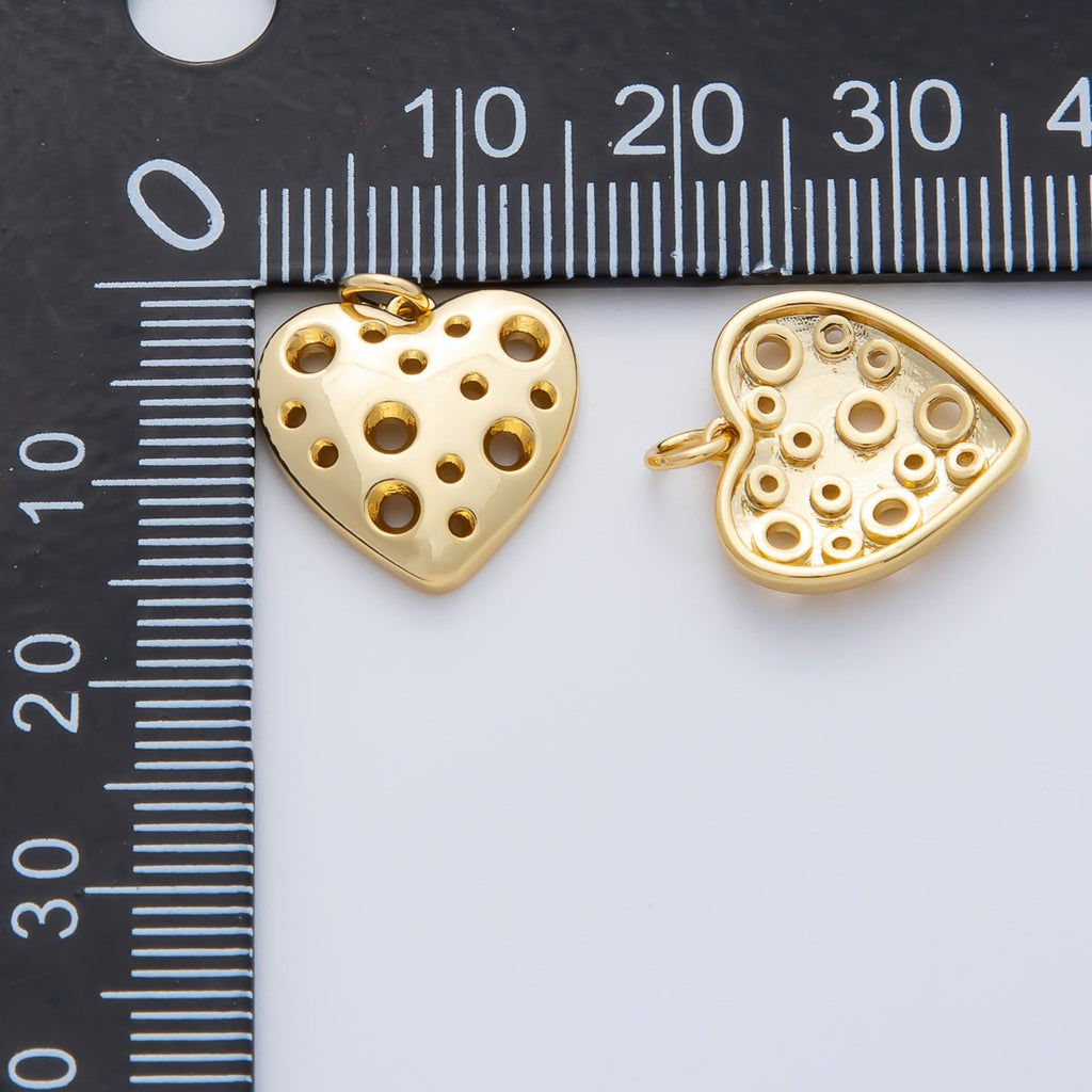 18K Gold Filled 15mm Open Dotted Heart Charm | AF1413