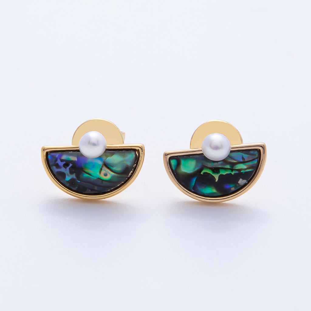 18K Gold Filled 16mm Shell Pearl Abalone Half Fan Stud Earrings | AB1673