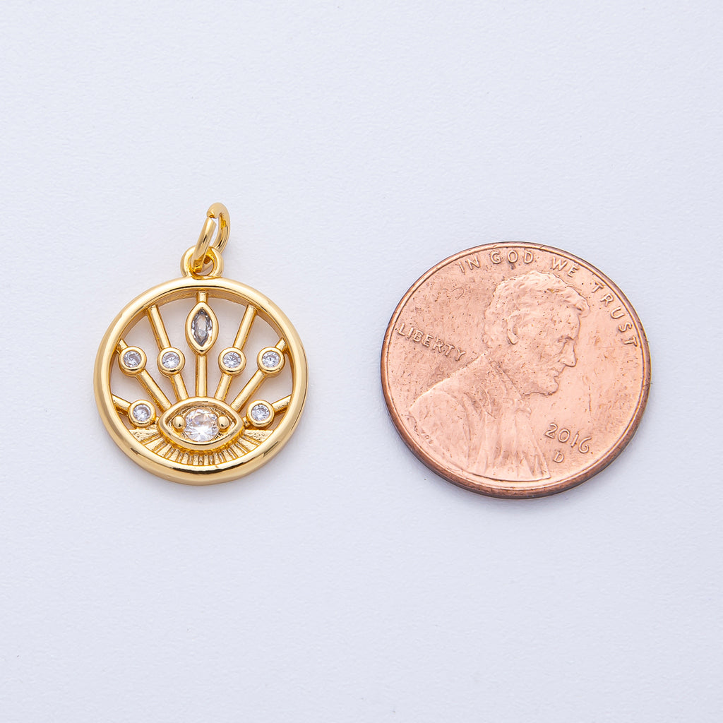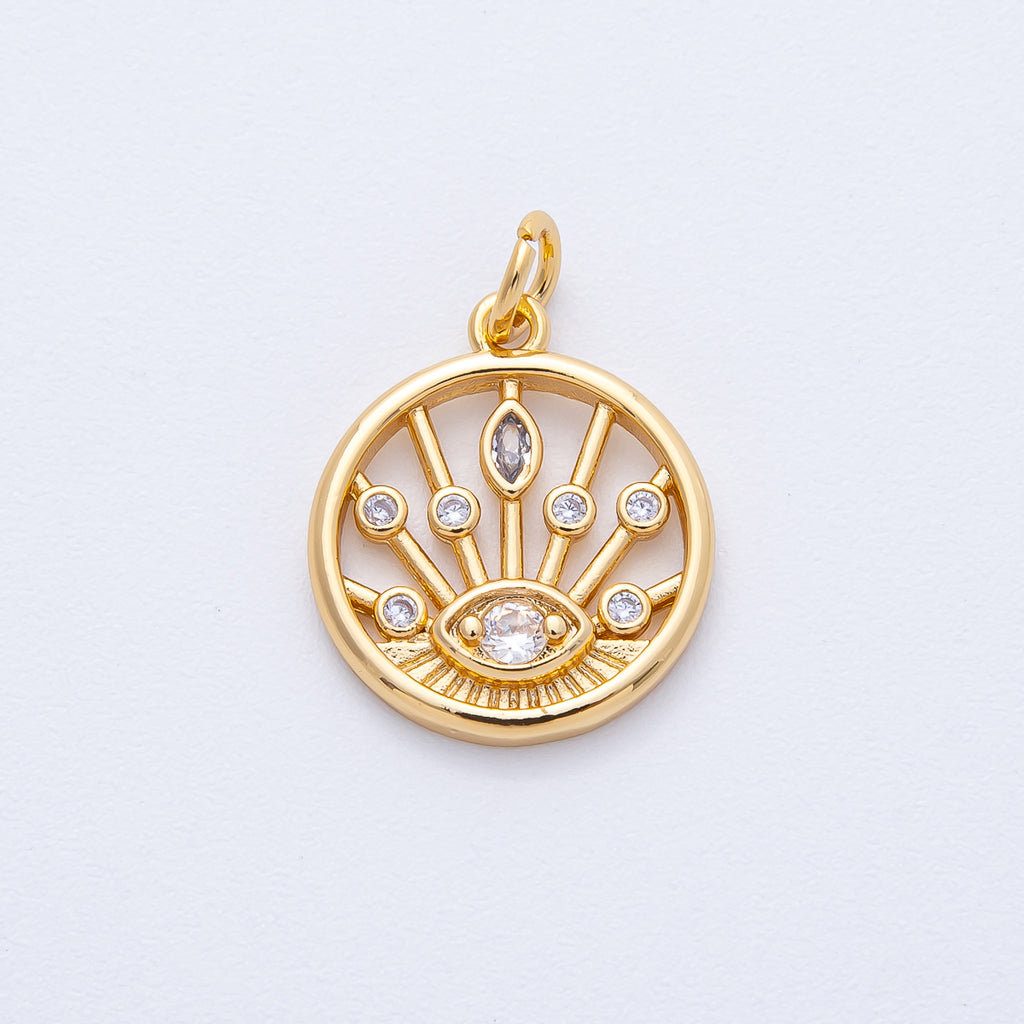 18K Gold Filled 18mm Sunburst Evil Eye CZ Round Charm | AK174