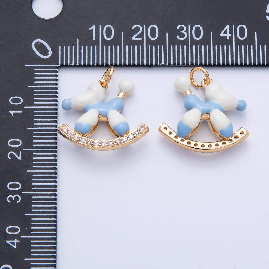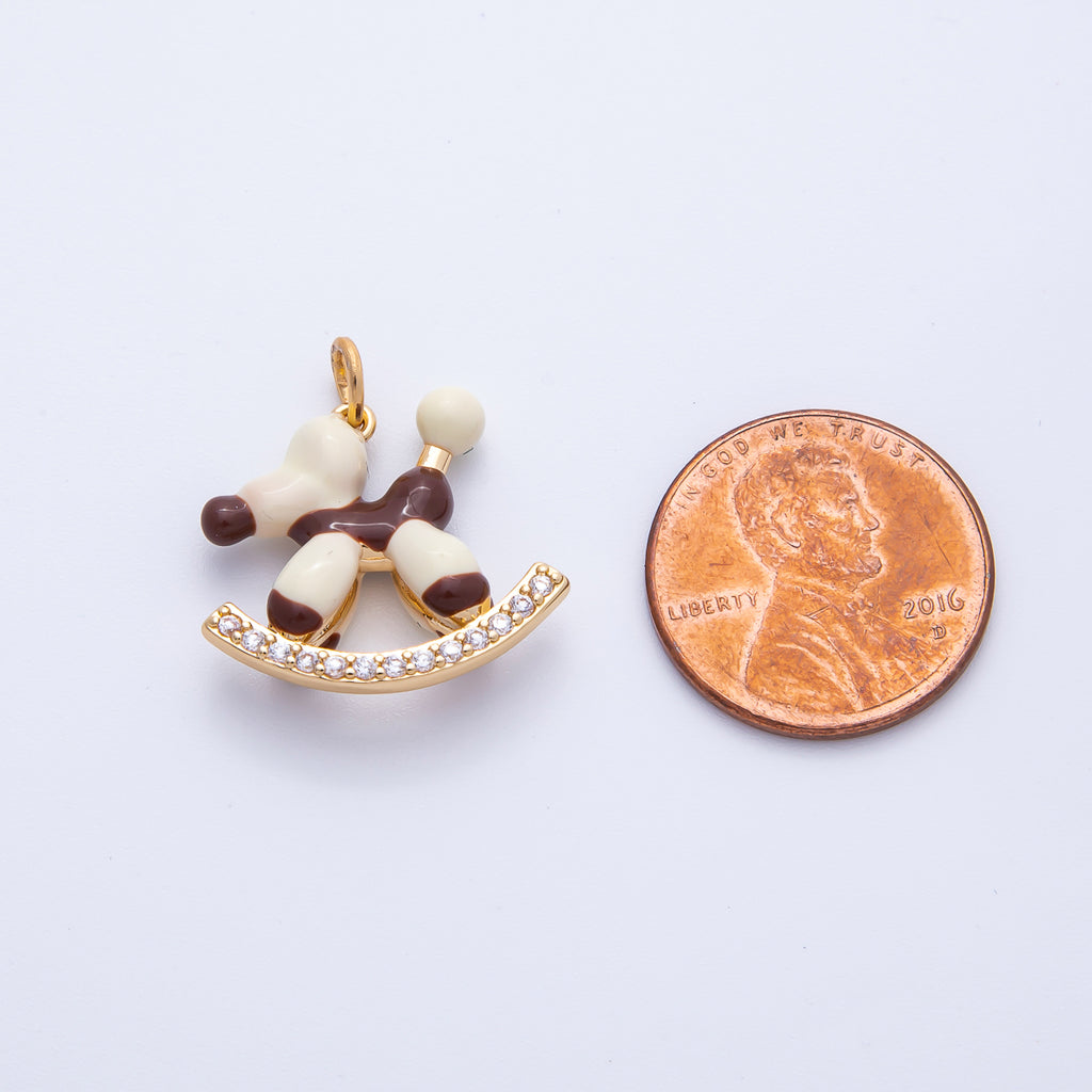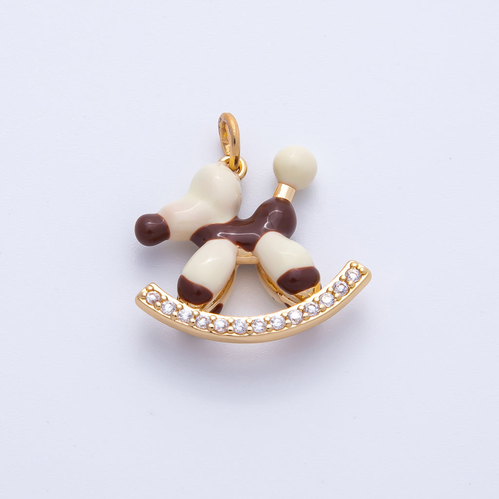 18K Gold Filled 20mm Blue, Brown Enamel Puppy Animal CZ Charm | AK209