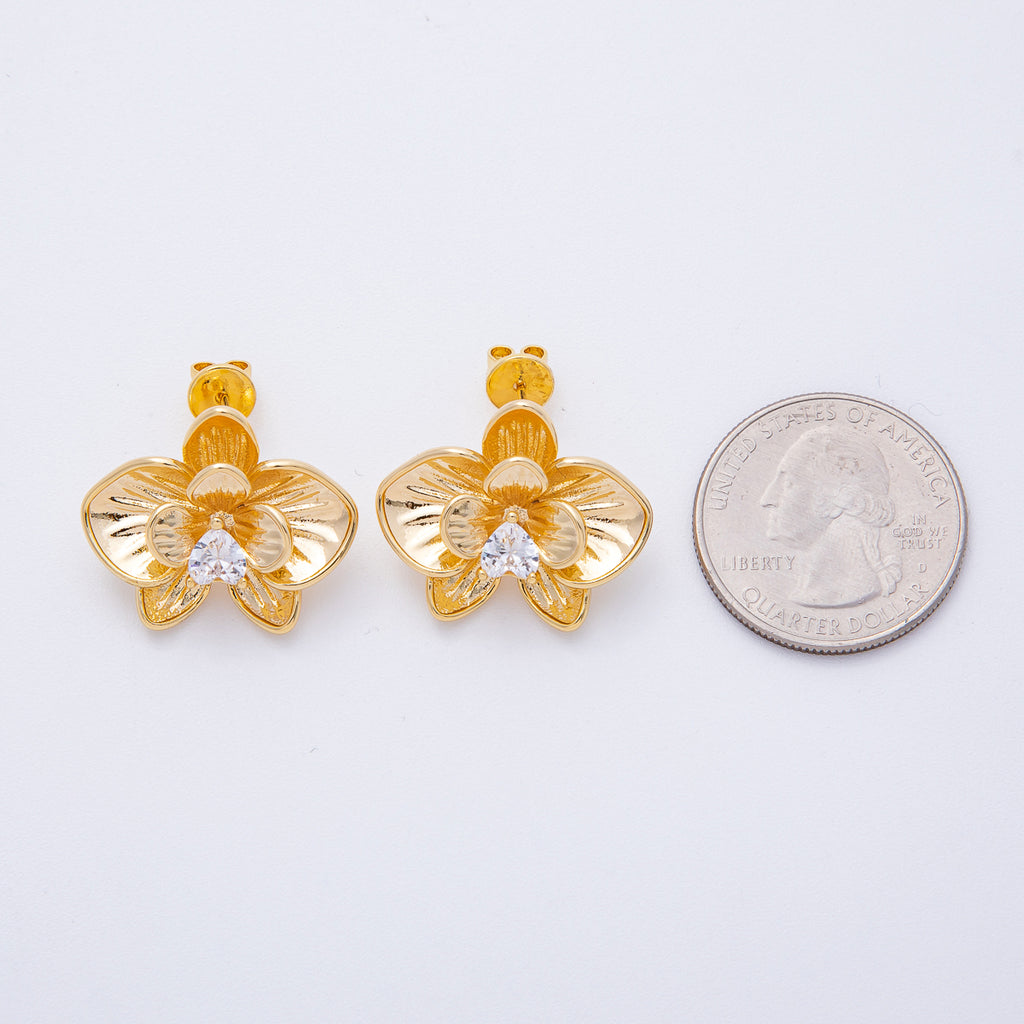 18K Gold Filled 20mm Clear CZ Heart Flower Stud Earrings | T011