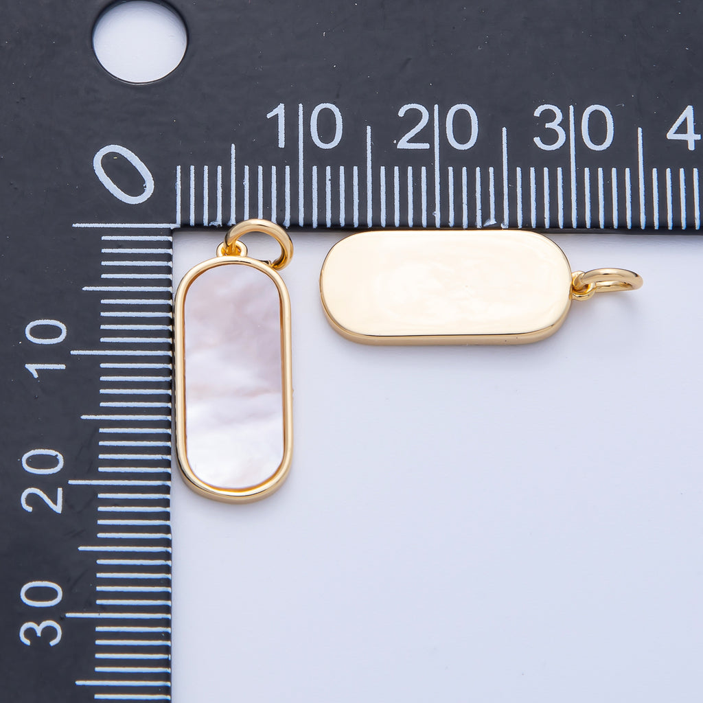 18K Gold Filled 20mm Shell Pearl Bezel Oblong Charm | AK205