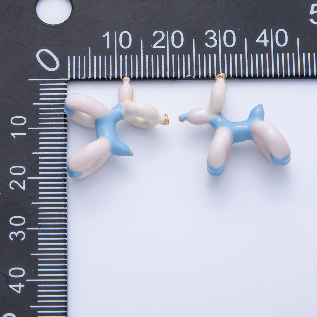 18K Gold Filled 22mm Blue, Brown Cute Puppy Animal Ceramic Charm | B751