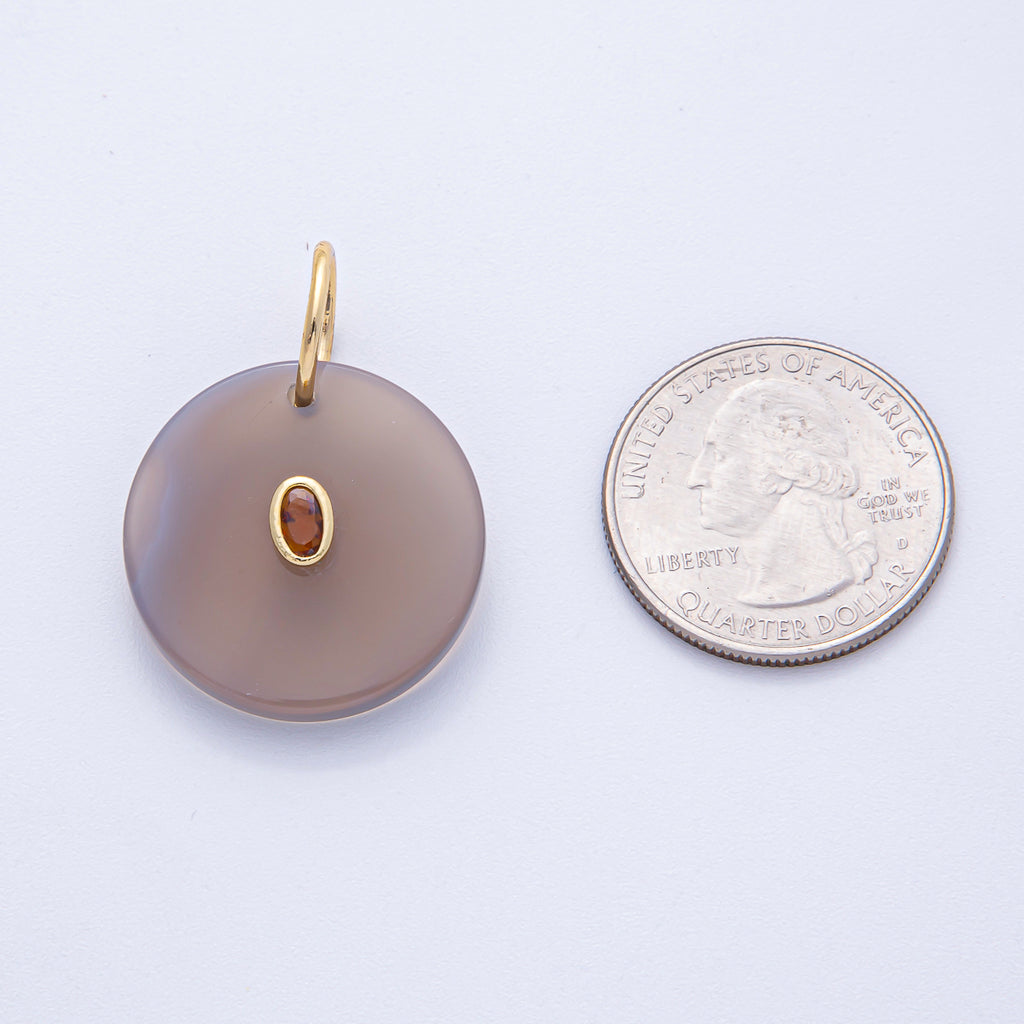 18K Gold Filled 25mm CZ Embedded Grey, Yellow, Red Round Gemstone Charm | AK053 AK054