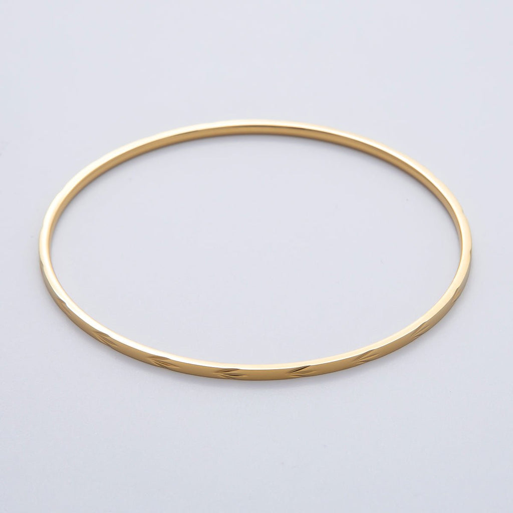 18K Gold Filled 2mm Thin Triple Lined Leaf Imprint Bangle Bracelet | WA-1457