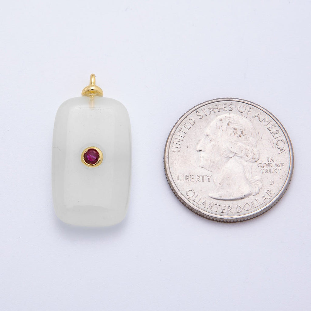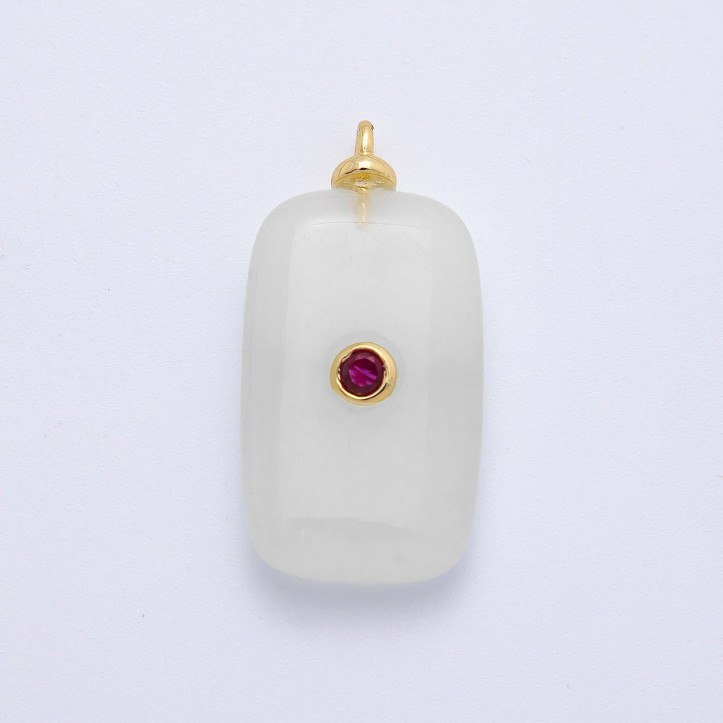 18K Gold Filled 30mm Embedded Fuchsia CZ White Agate Rectangle Gemstone Charm | Charms-00255