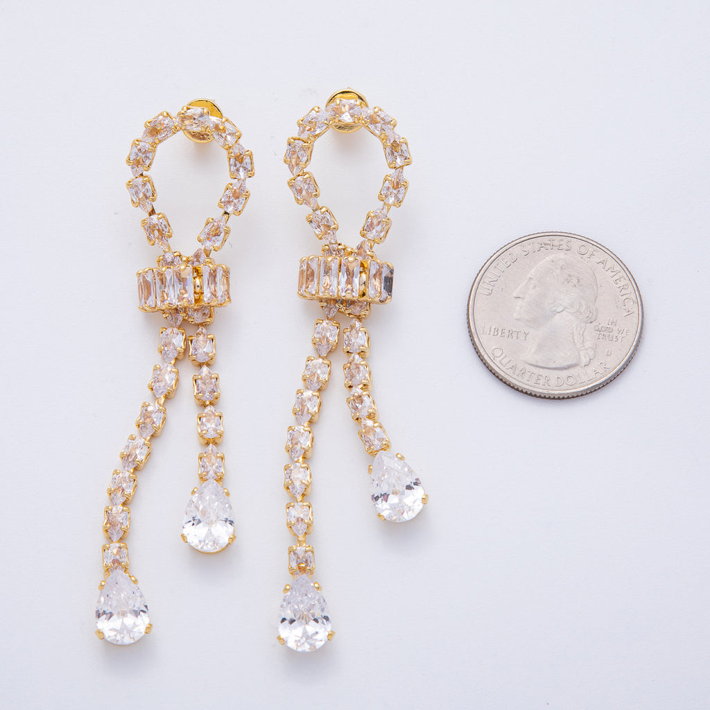 18K Gold Filled Clear CZ Teardrop Baguette Knot Drop Stud Earrings | T067