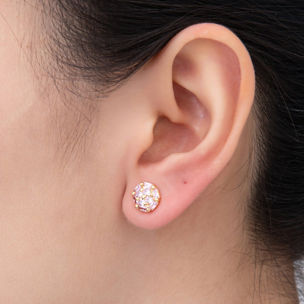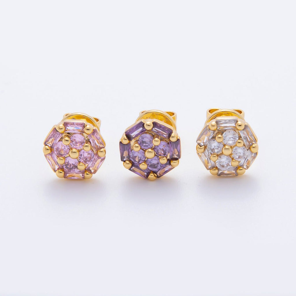 18K Gold Filled Purple & Pink CZ in Micro Paved & Baguette Cut Icy Petal Flower Studs Earrings | AJ204 AJ206