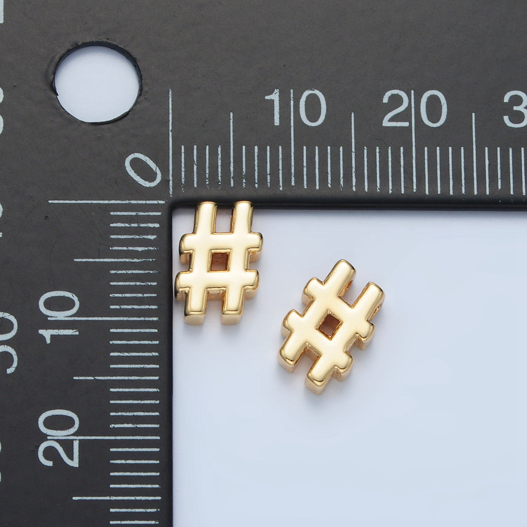 24K Gold Filled 10mm "#" Number Sign Minimalist Bead in Gold & Silver | B909