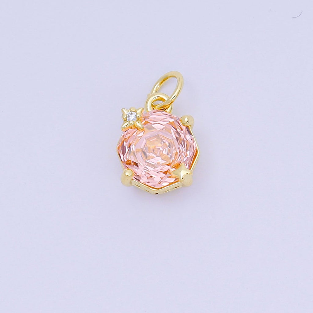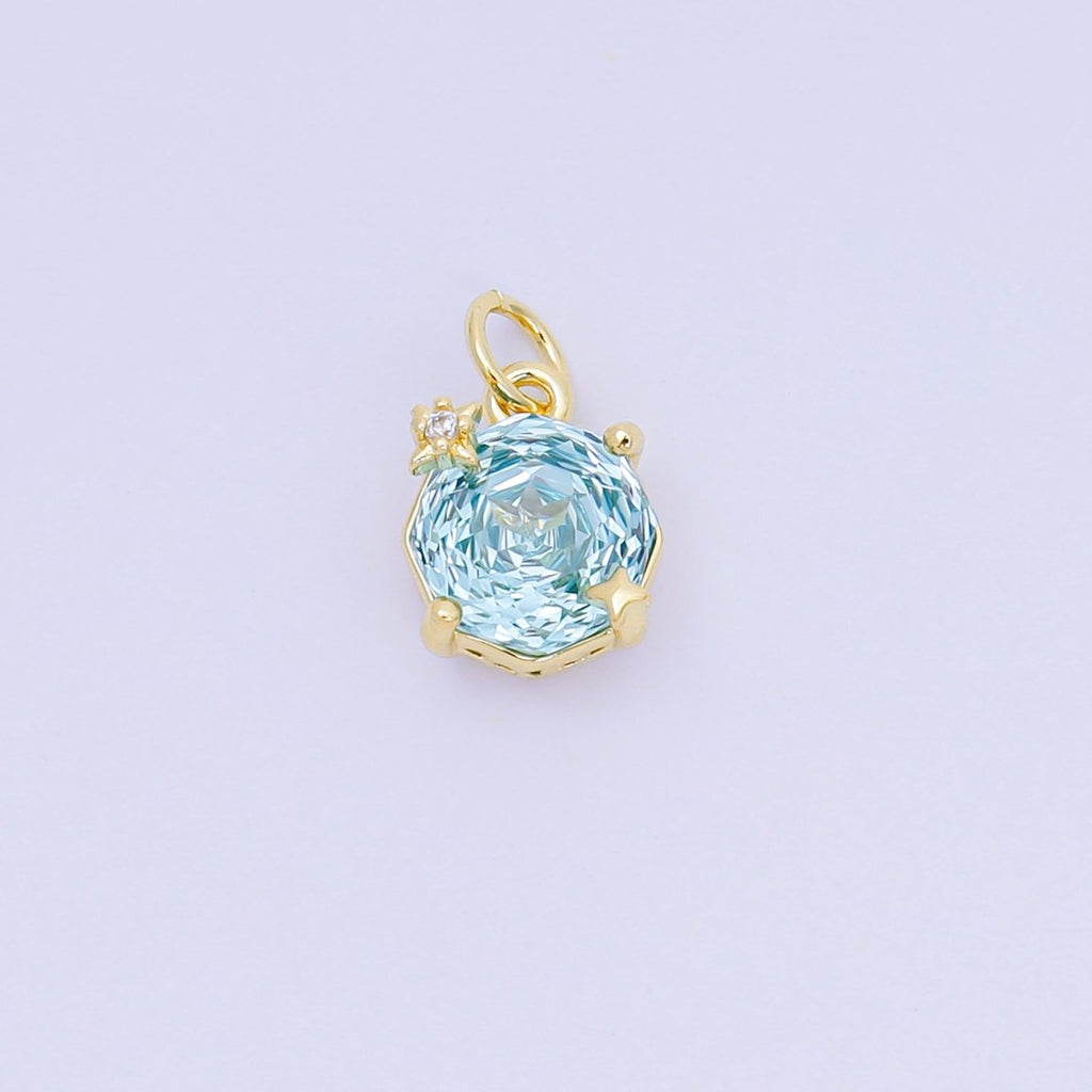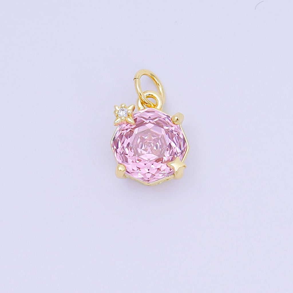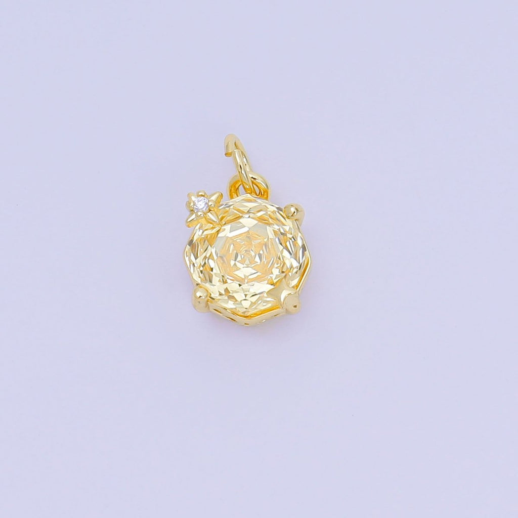 24K Gold Filled Celestial Sun Round CZ Birthstone Charm | M102 - M106 M197 M212
