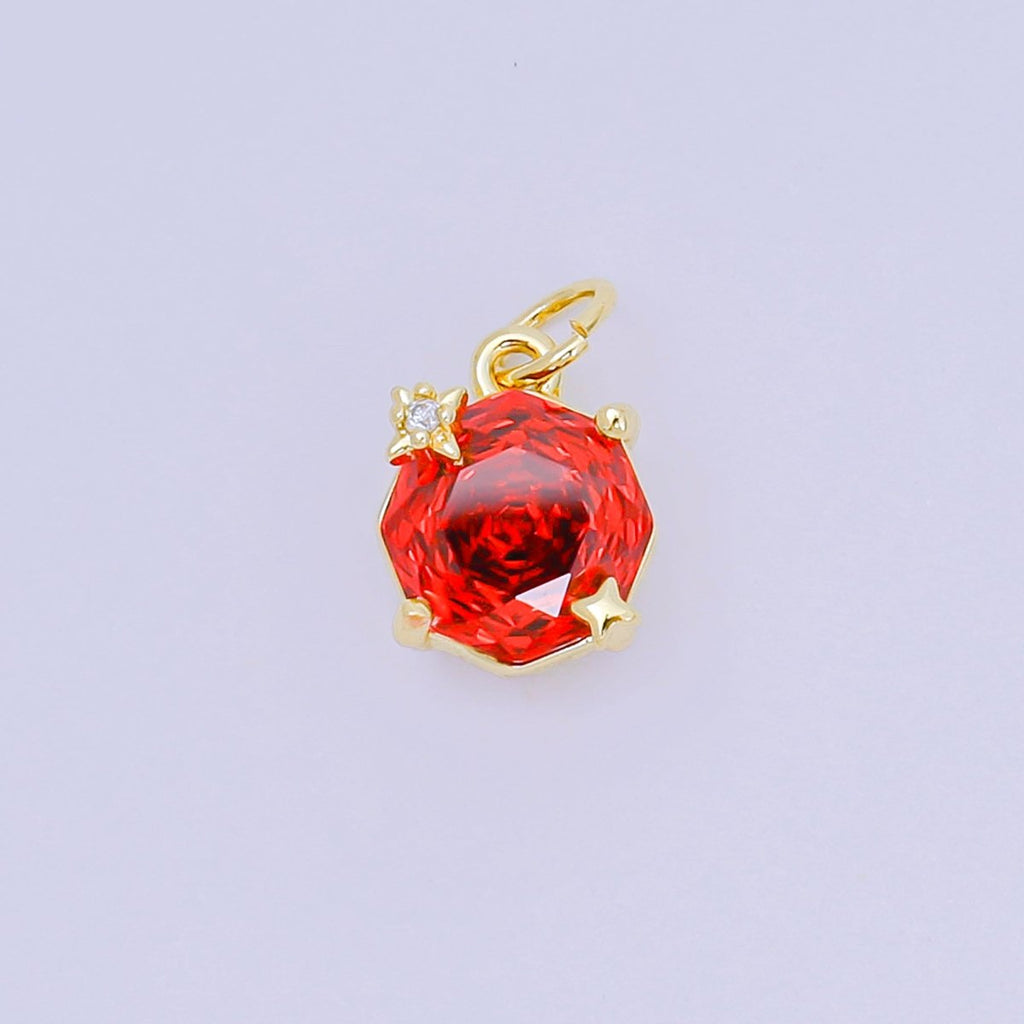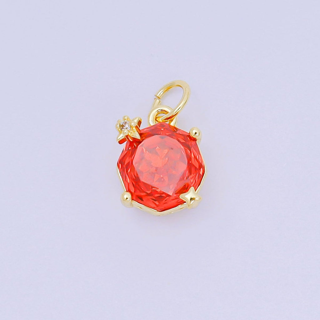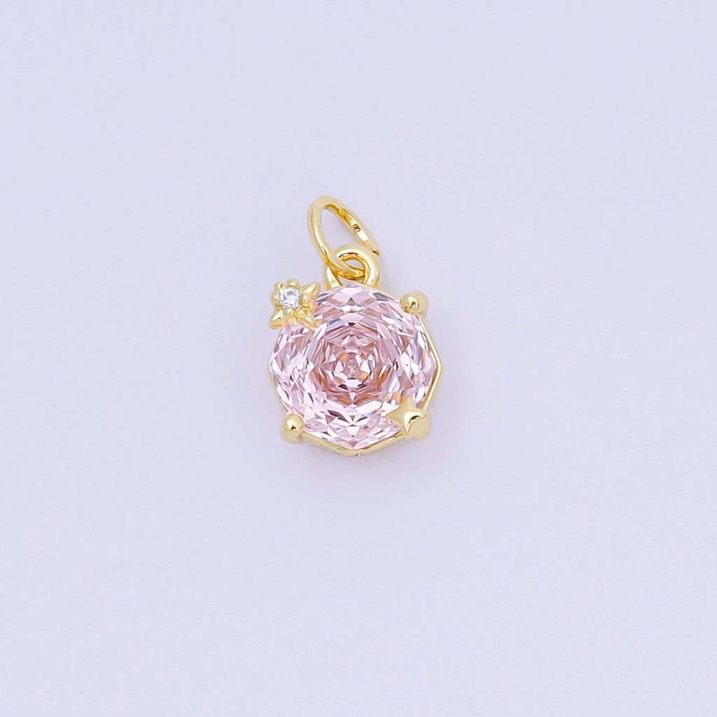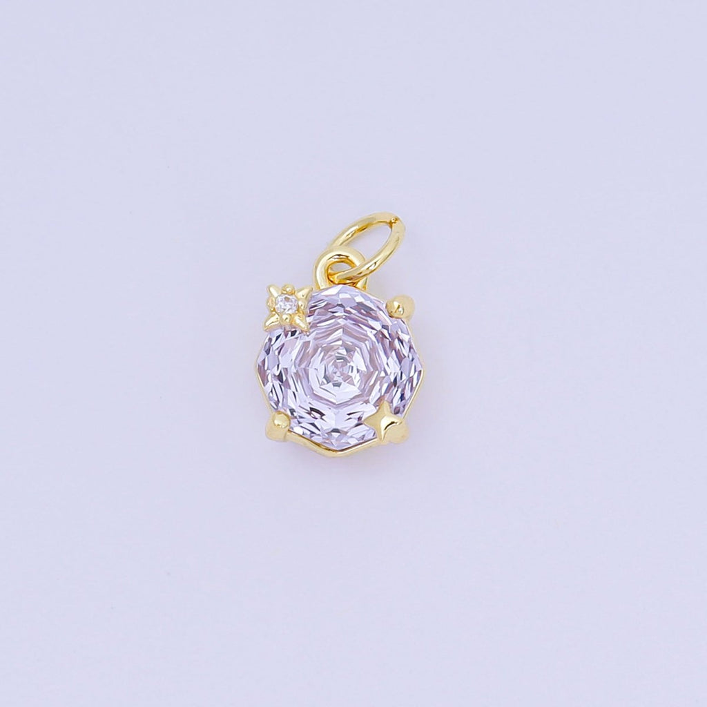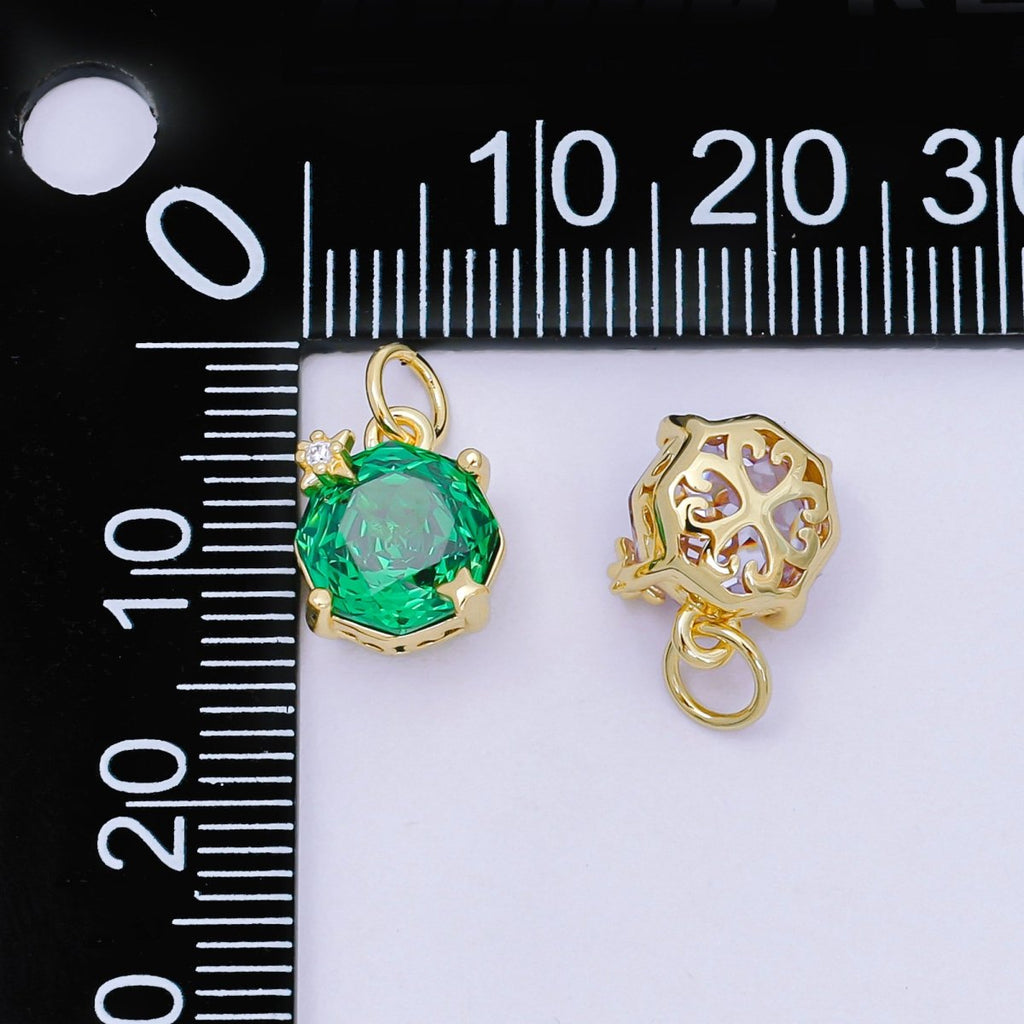 24K Gold Filled Celestial Sun Round CZ Birthstone Charm | M102 - M106 M197 M212