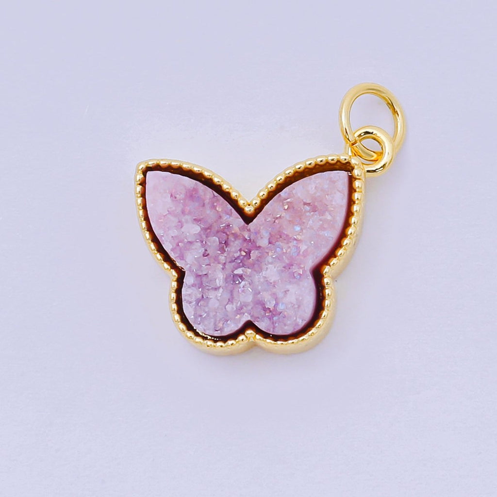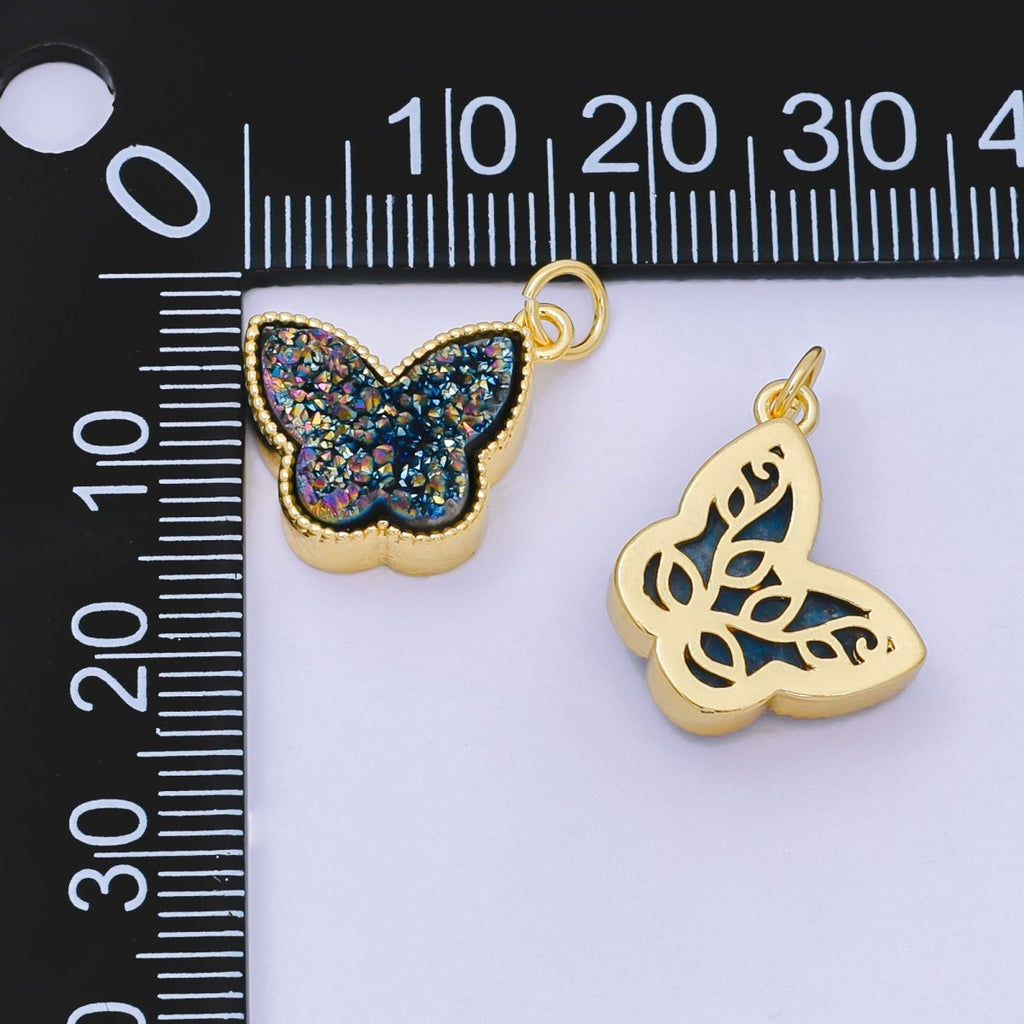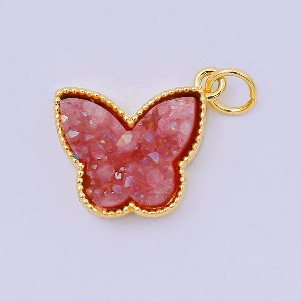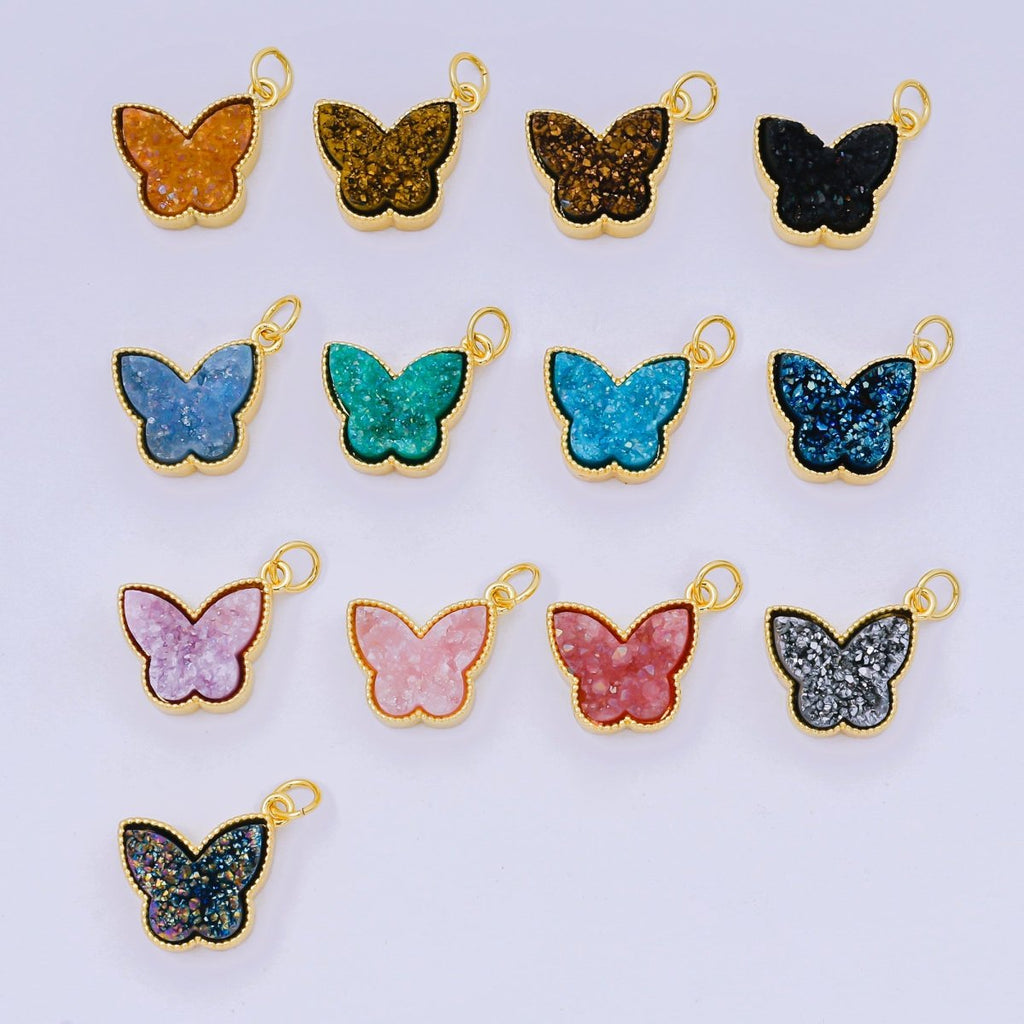 24K Gold Filled 14mm Glittery Multicolor Butterfly Druzy Stone Animal Charm | D-668 D-677 D-700 D-708 D-757 D-796 D-810