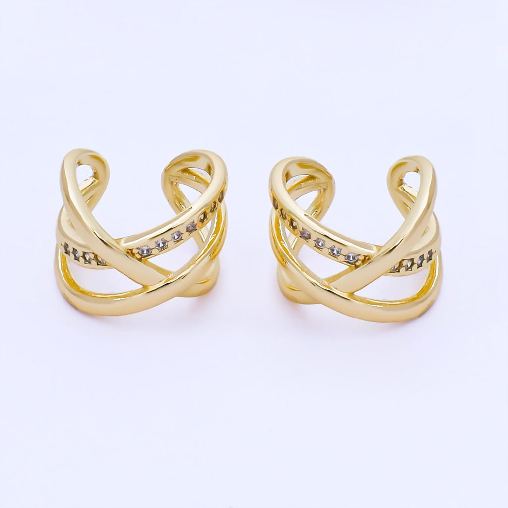 24K Gold Filled 14mm Micro Paved CZ X Shaped Band Ear Cuff Earrings | AI186