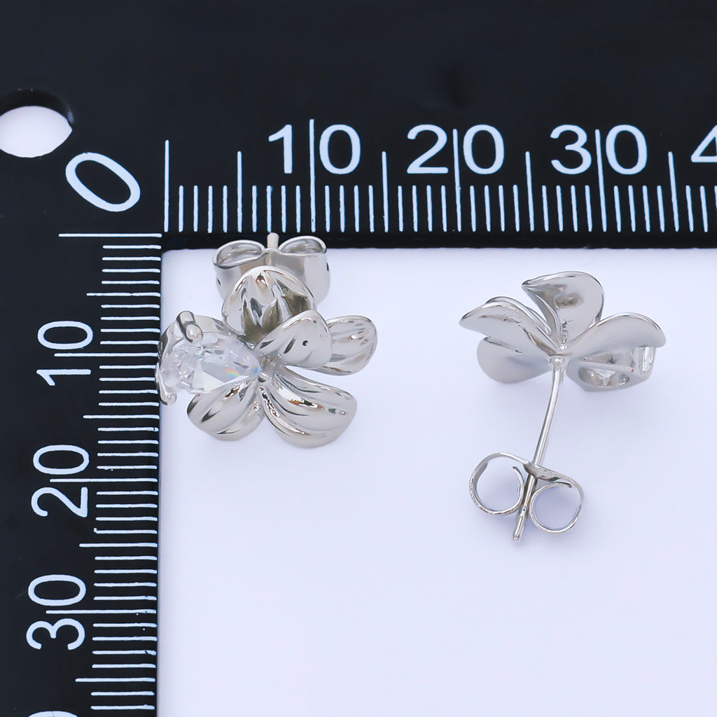 Silver 14mm Teardrop CZ Blooming Flower Floral Studs Earrings | AB1608