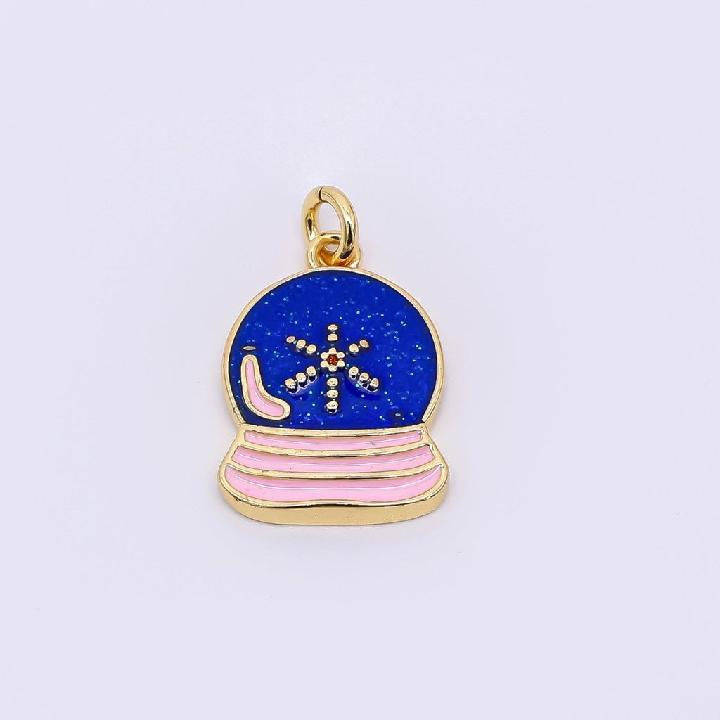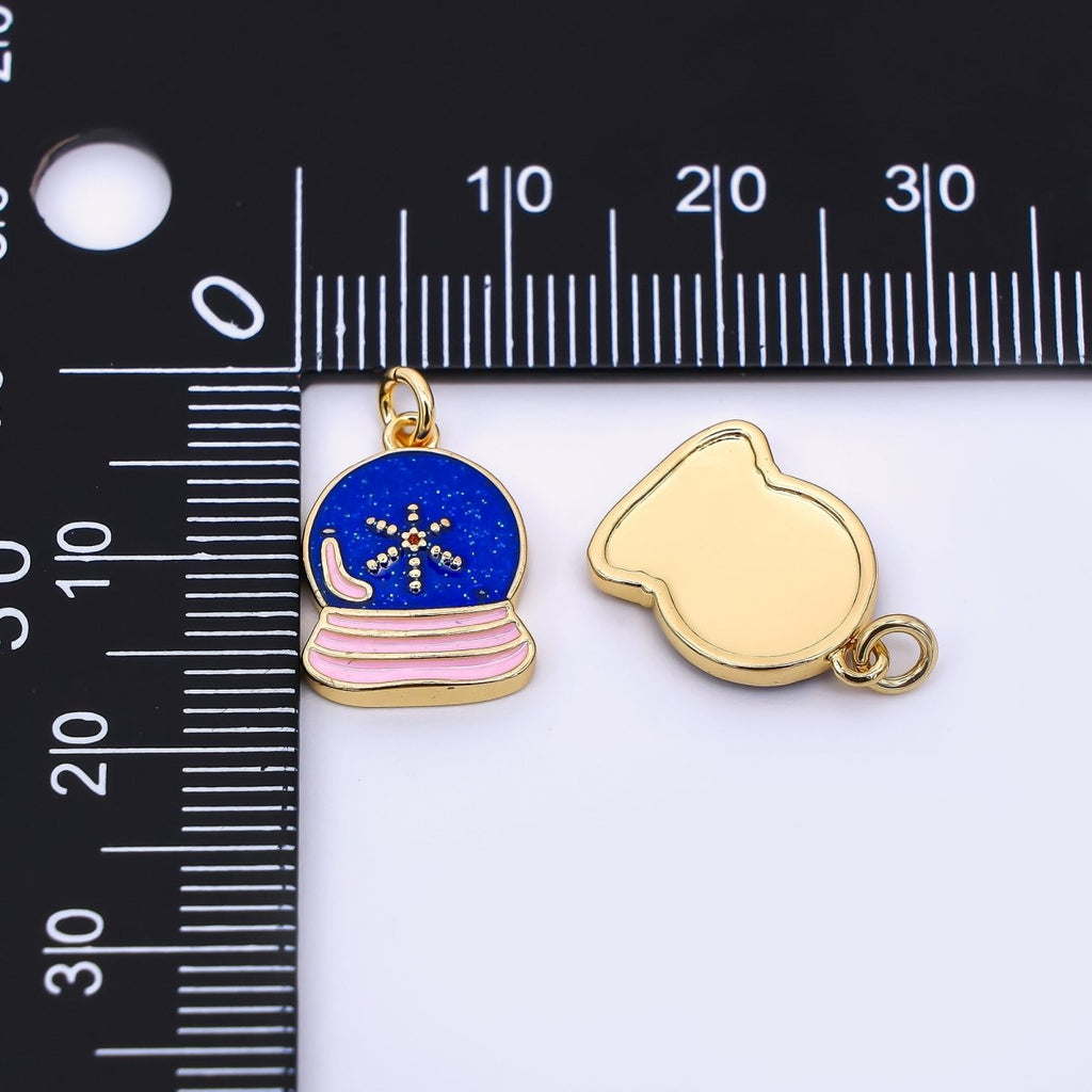 24K Gold Filled 15mm Enamel Art Snow Crystal Bell Winter Mittens Gloves Charm | AF-521