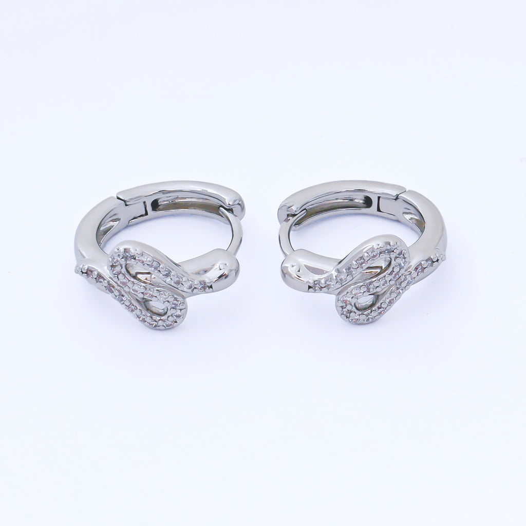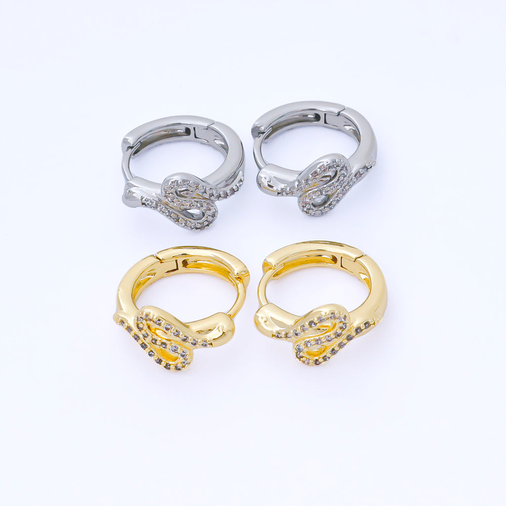 24K Gold Filled 15mm Micro Paved CZ Curved Snake Huggie Earrings in Silver & Huggie | AB1619 AB1620