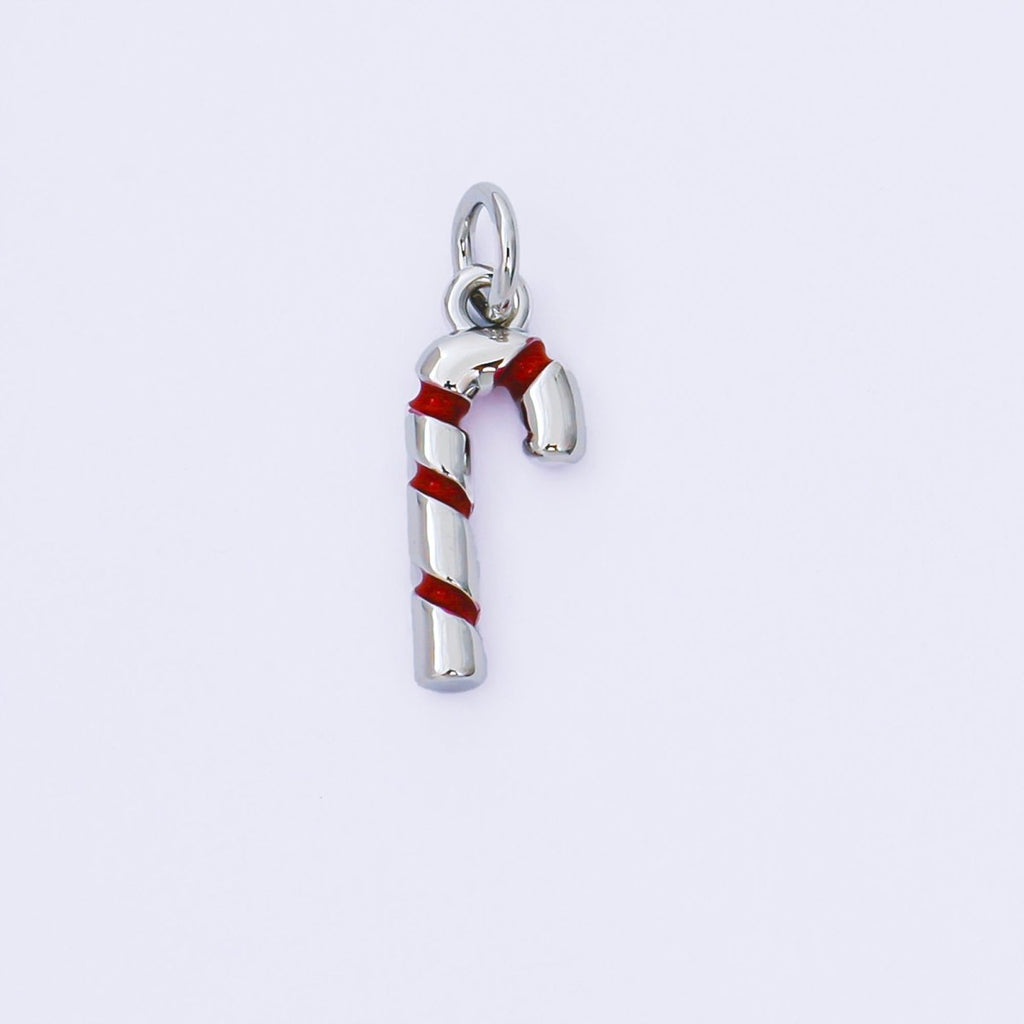 24K Gold Filled 15mm Red Candy Cane Christmas 3D Multidimensional Charm in Gold & Silver | AF1297