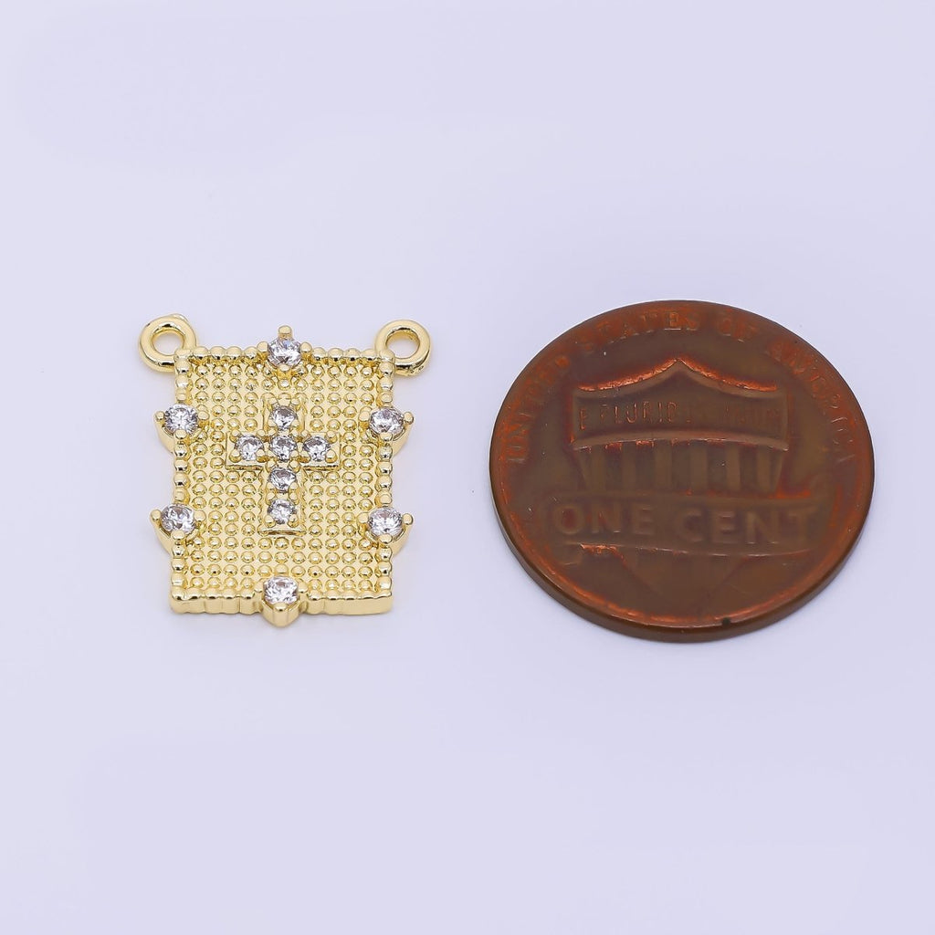 24K Gold Filled 17.5mm Micro Paved CZ Cross Dotted Rectangle Connector | Y-061