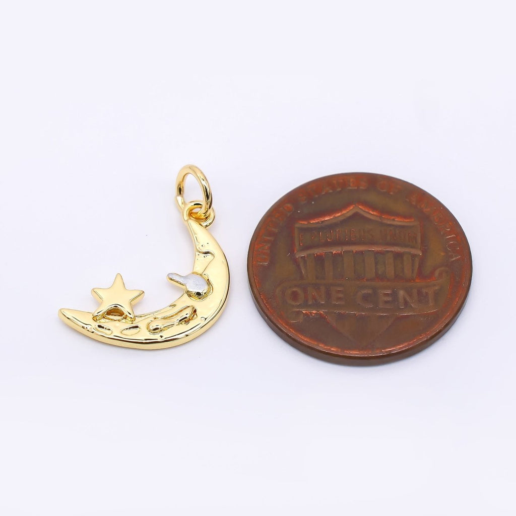 24K Gold Filled 17mm Crescent Good Night Moon Star Charm | AF-518