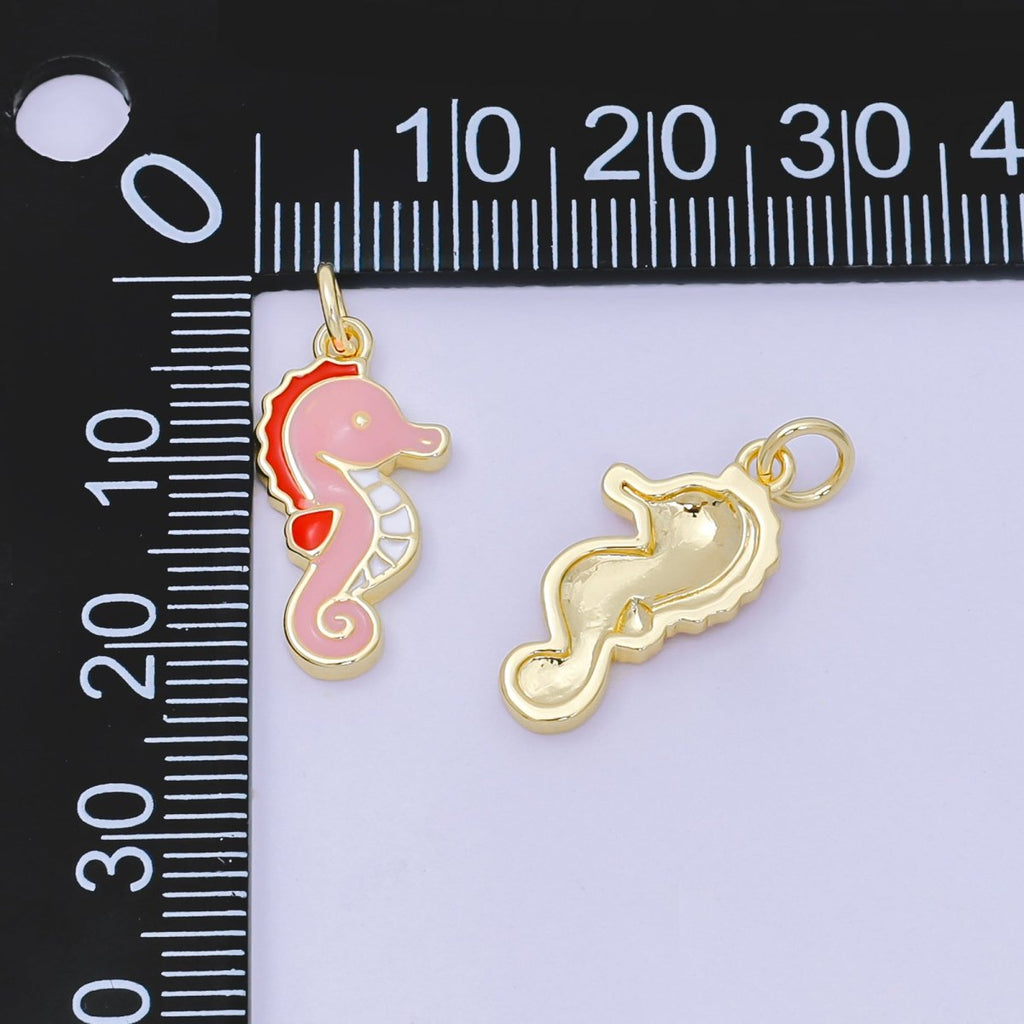 24K Gold Filled 19mm Pink Enamel Ocean Seahorse Animal Charm | D-532