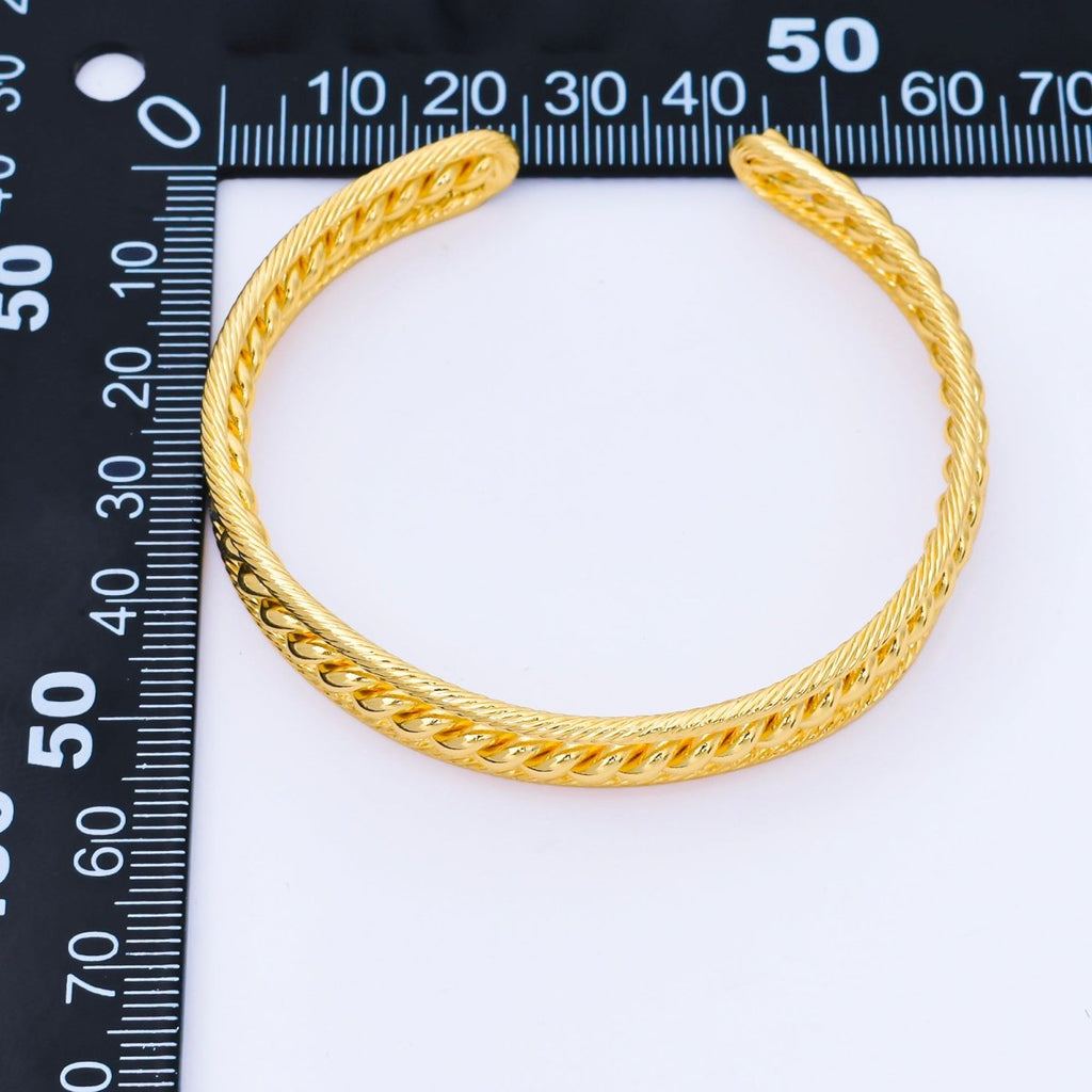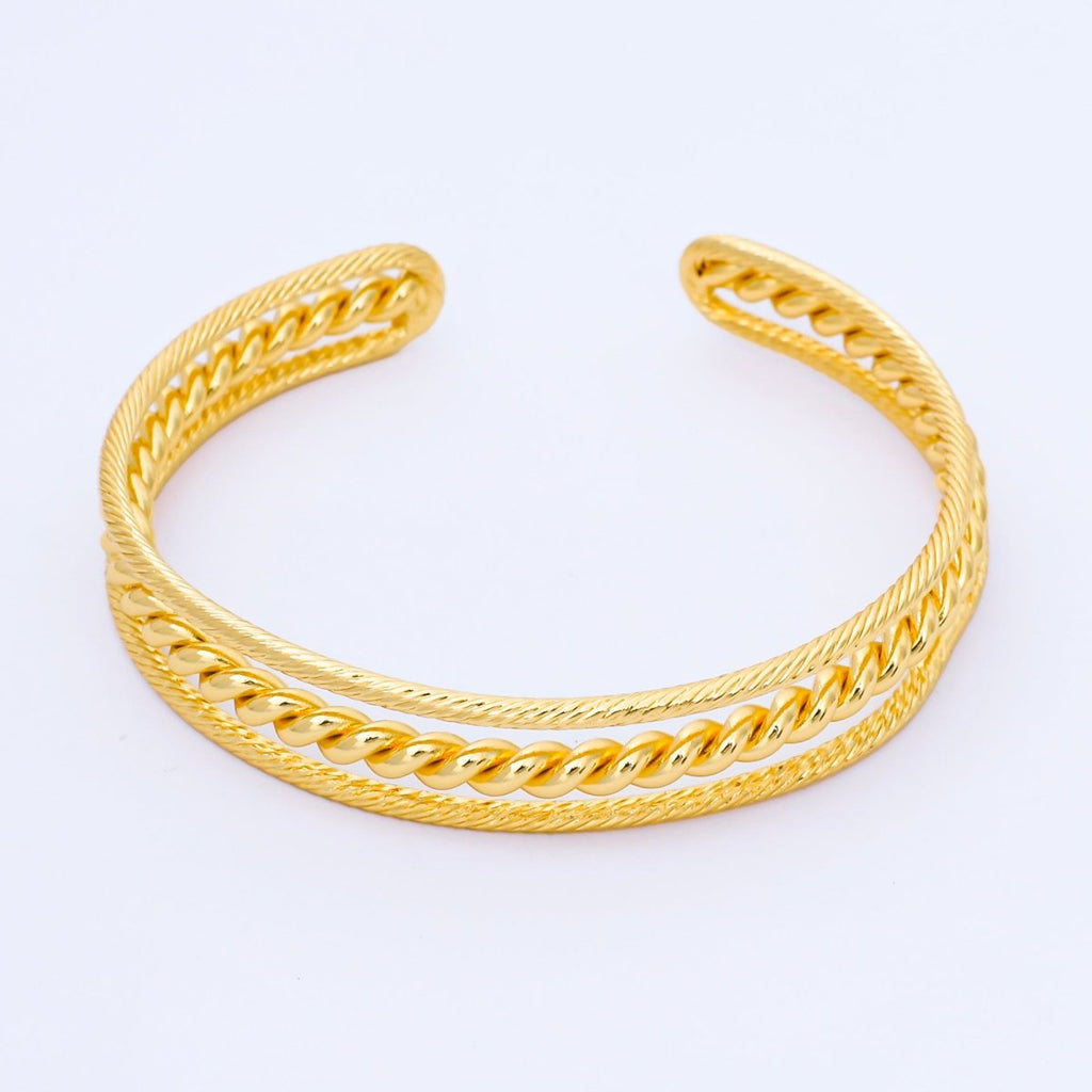 24K Gold Filled Twisted Rope Triple Band Cuff Bracelet | WA-1687
