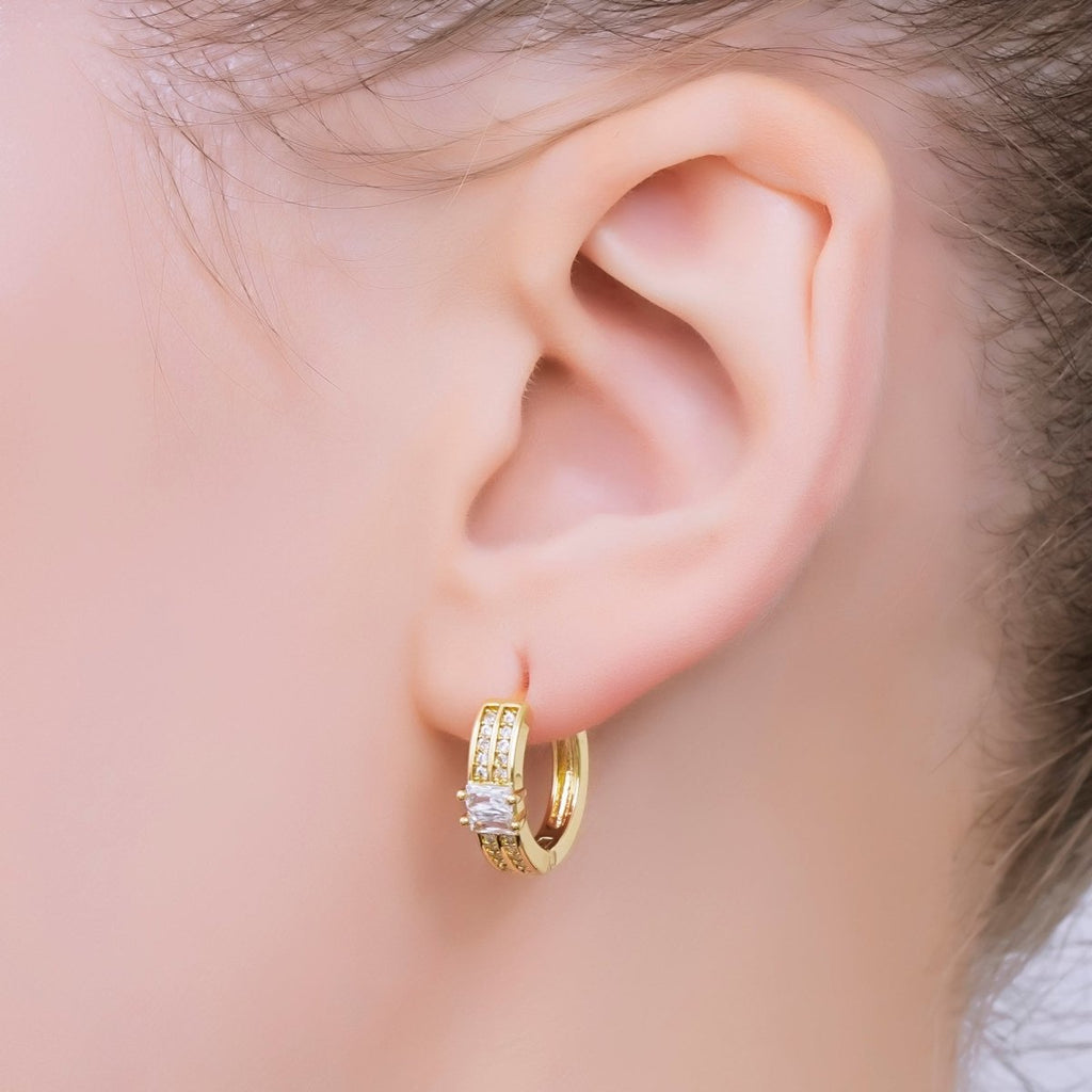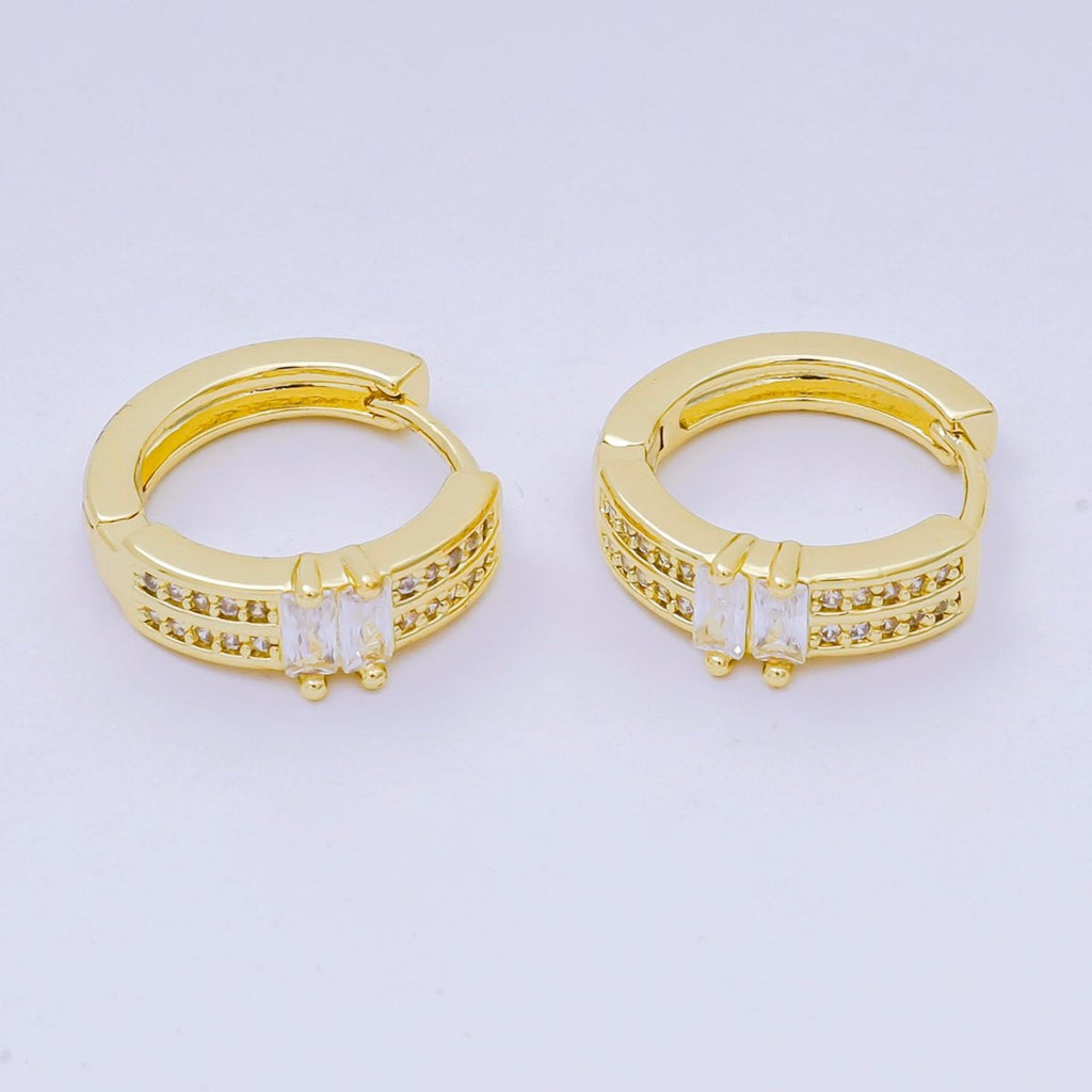 24K Gold Filled 17mm Micro Paved CZ Double Row Radiance Hinged Huggie Hoops Earrings in Gold & Silver | AJ-123 AJ-124