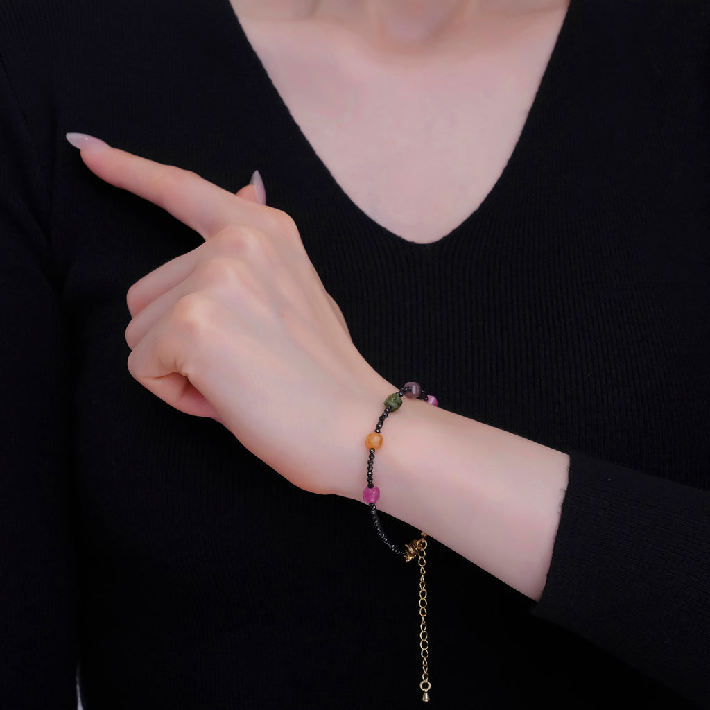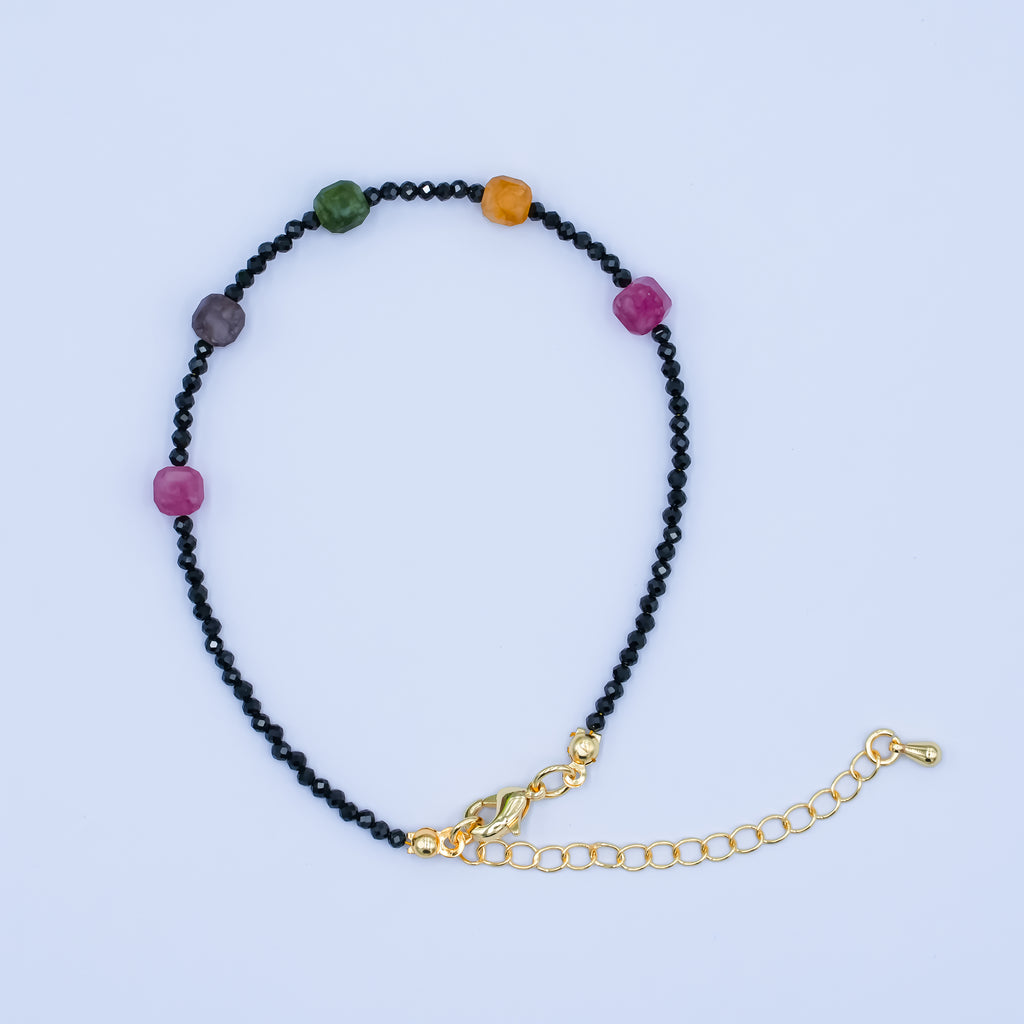 24K Gold Filled Multifaceted Multicolor Black Onyx Gemstone 7.5 Inch Bracelet | WA-2881