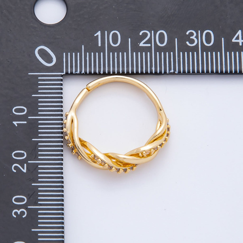 Dainty Mix Metal Gold Braided Ring with CZ Elegant Twist Band Adjustable O-2114