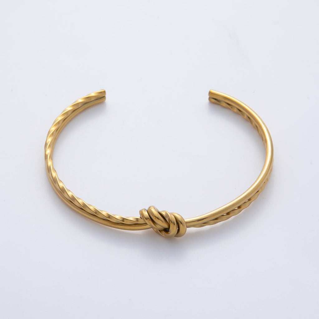 Stainless Steel Knot Twisted Double Band Cuff Bracelet in Gold & Mixed Metal | WA-1218 WA-1225
