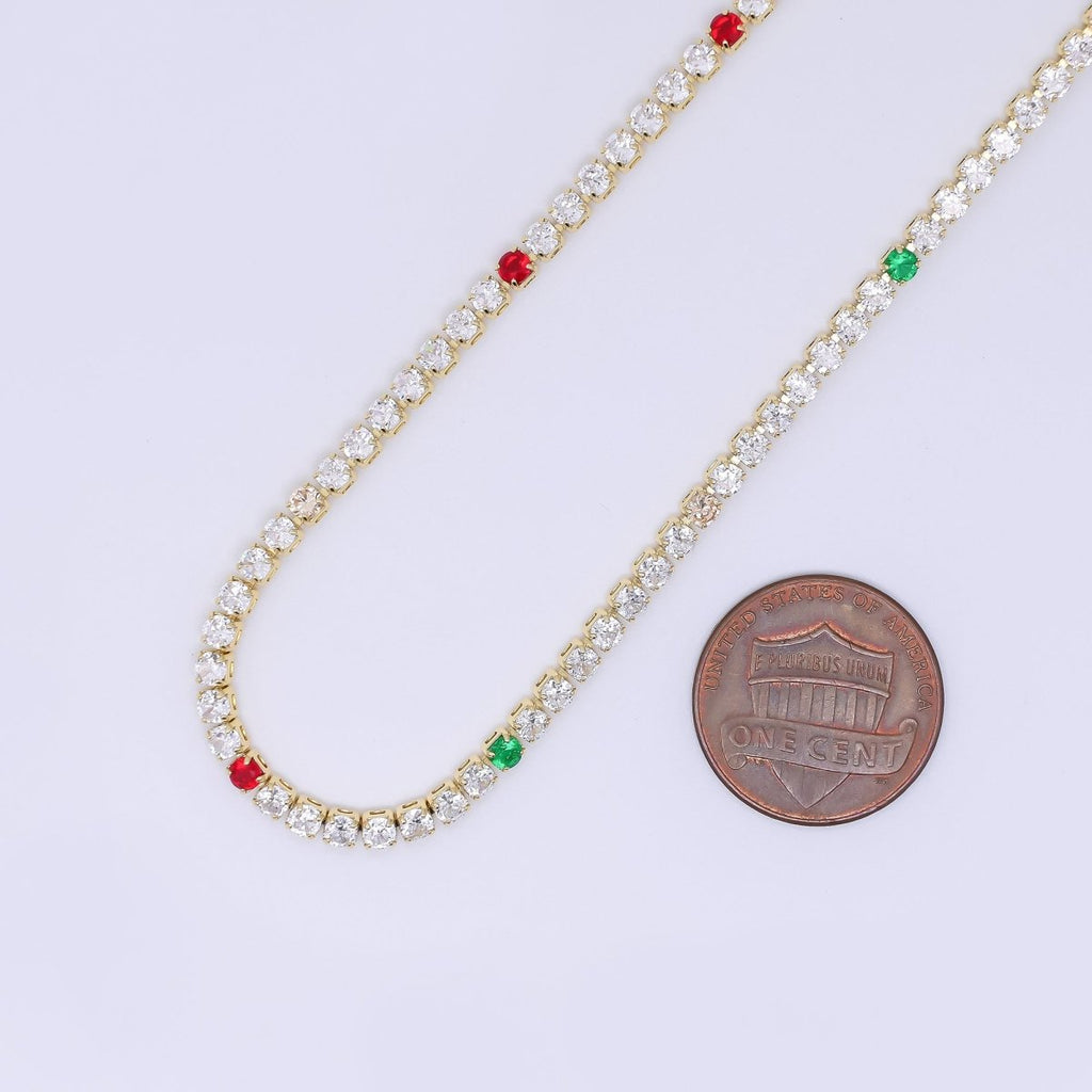 Minimalist Multi Color CZ Tennis Gold Filled Necklace 16.5 Inch + Extender | WA-1635