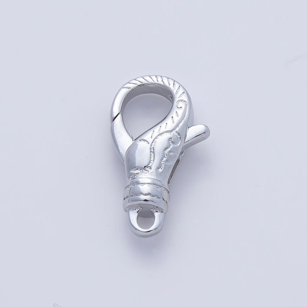Rhodium Plated 18mm Lined Engraved Lobster Claw Clasps Finding | Z1616