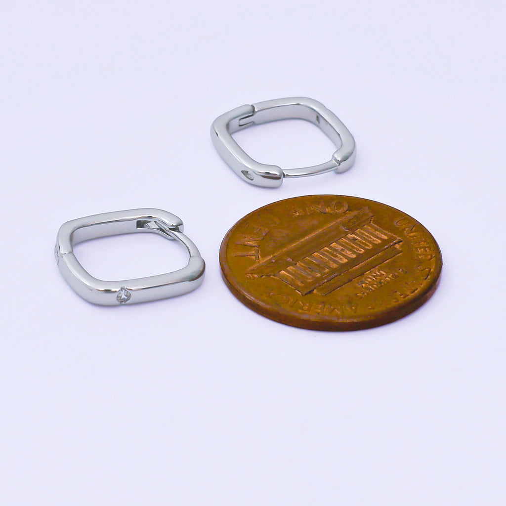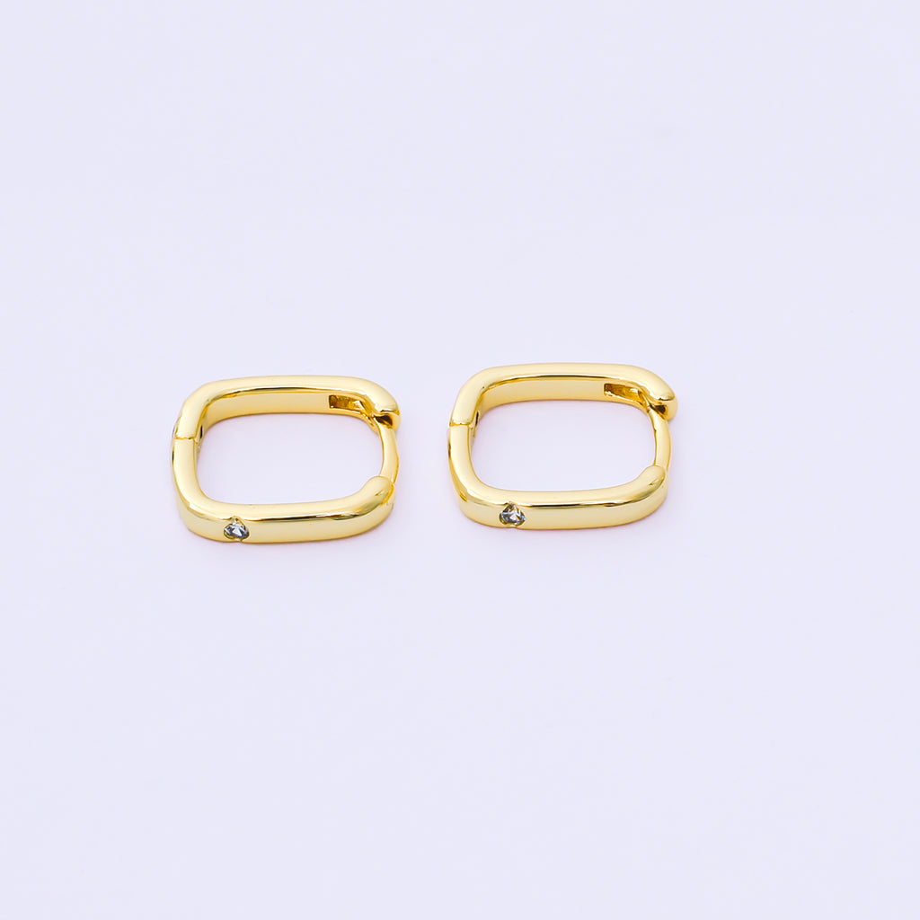 24K Gold Filled 12mm Clear CZ Square Cartilage Huggie Earrings in Gold & Silver | AB241