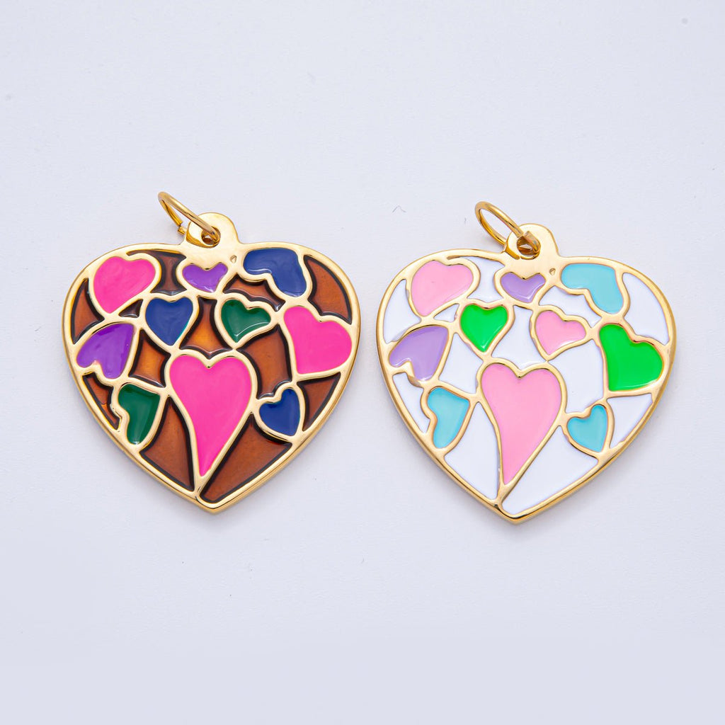 Stainless Steel 40mm Neon, Pastel Multicolor Enamel Heart Statement Charm | J908