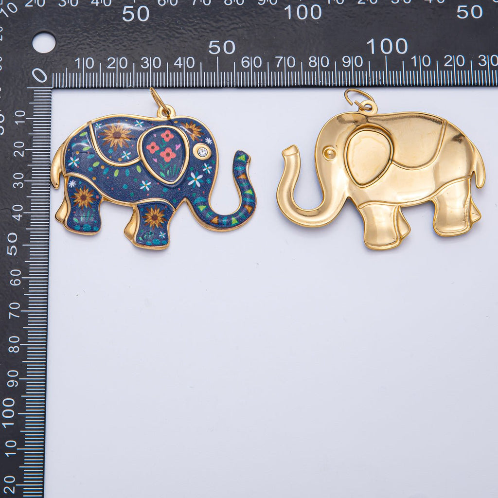 Stainless Steel 46mm Blue Flower Enamel CZ Elephant Statement Charm | J898