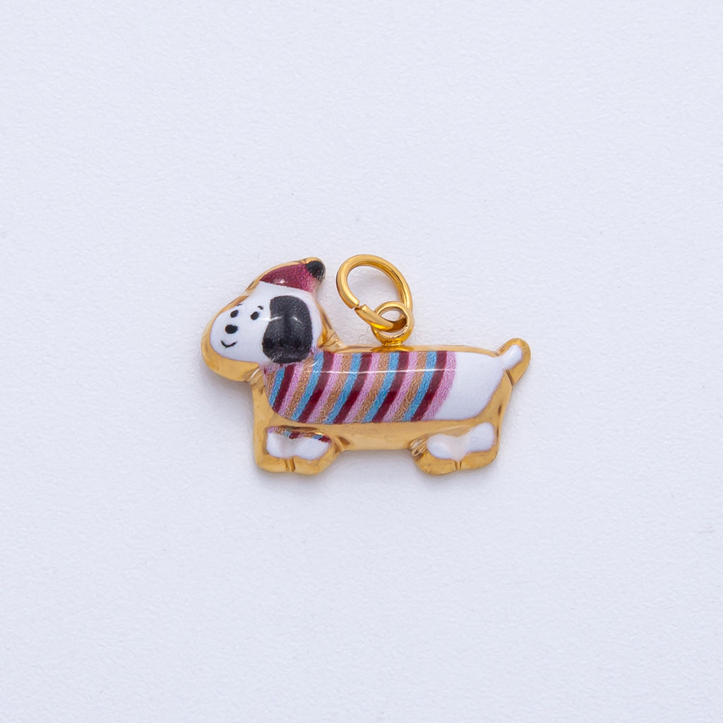 Stainless Steel White, Brown 18mm Cute Enamel Puppy Animal Charm | J693