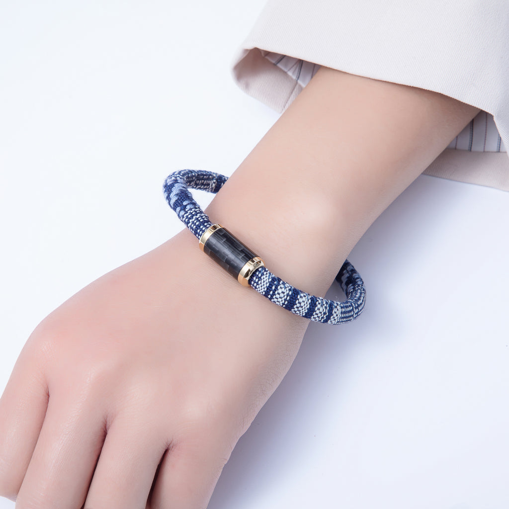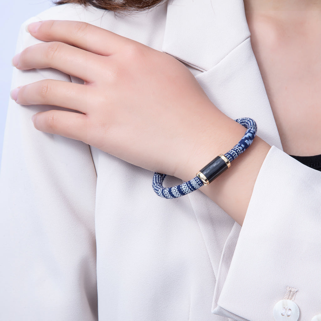 10mm Blue Woven Embroidered Fabric Cord 8.86 Inch Bracelet | WA-3962