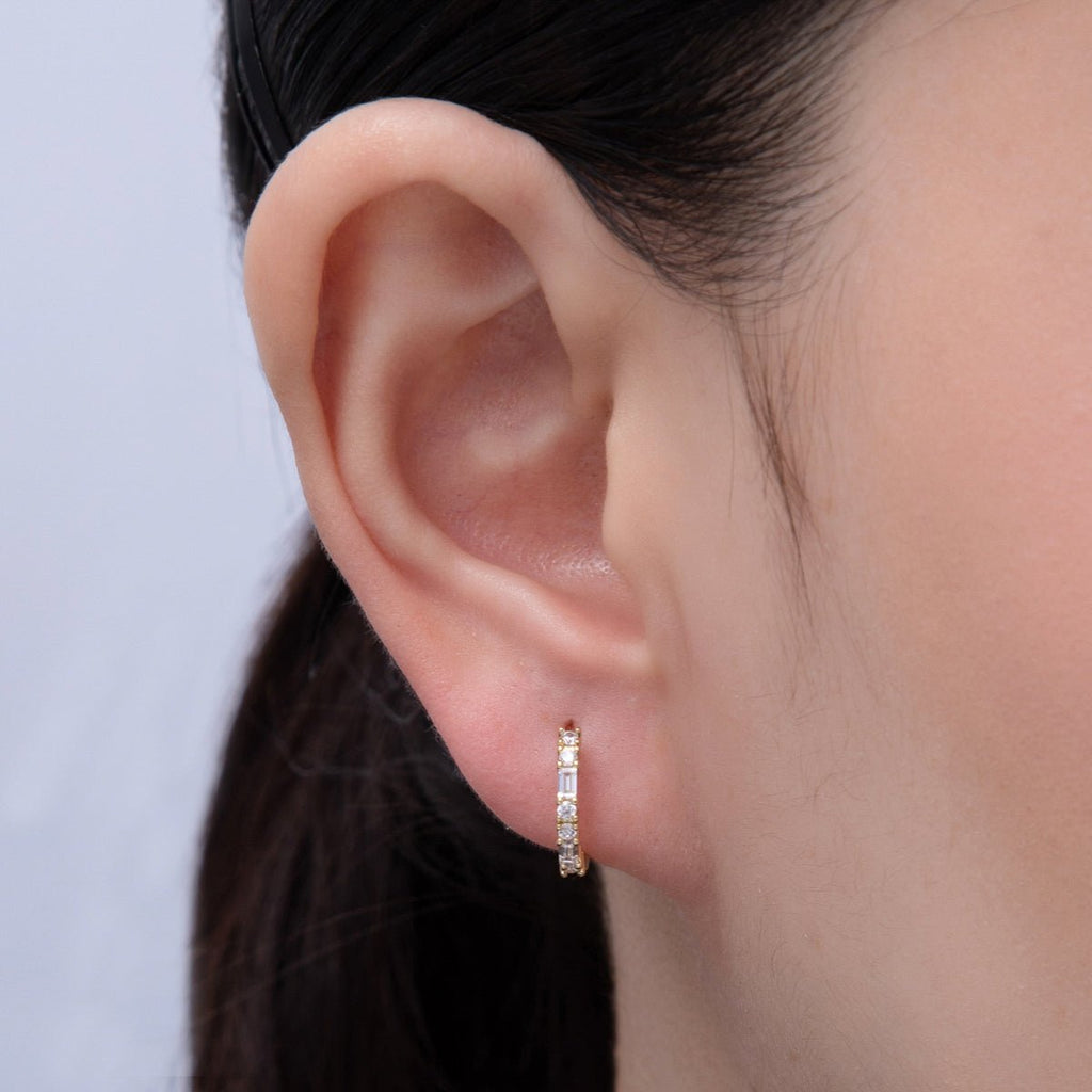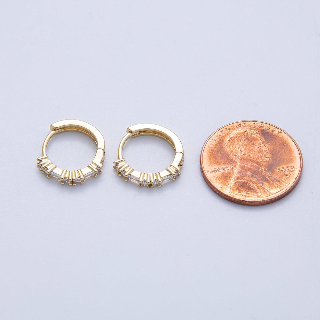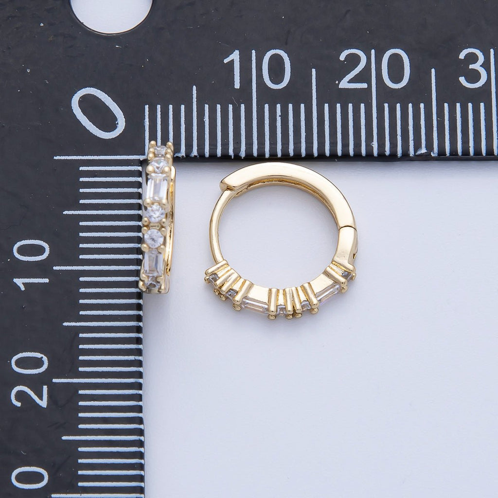 14K Gold Filled 12.5mm Clear CZ Round Baguette Cartilage Huggie Earrings | Earrings-00096