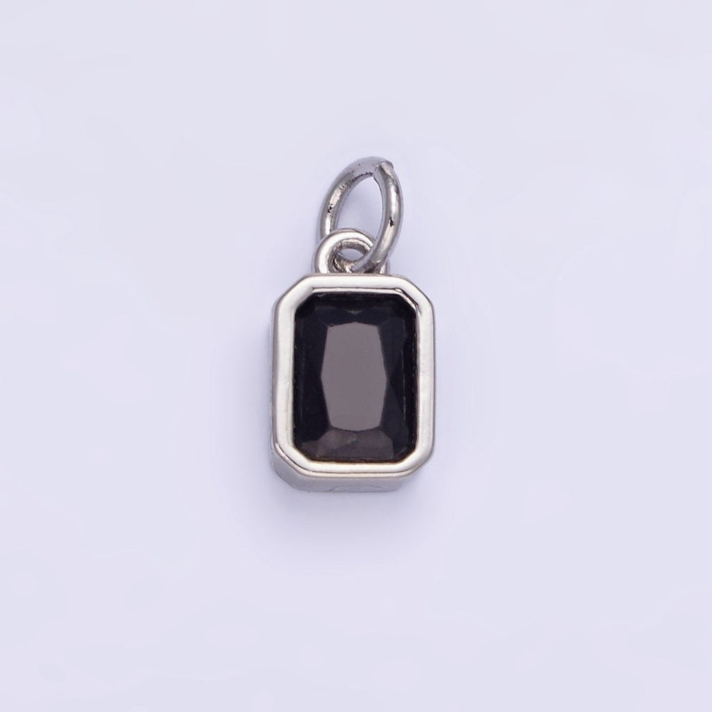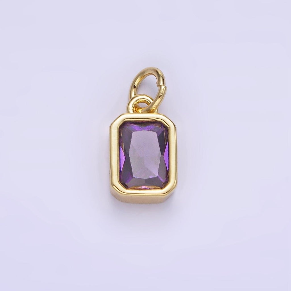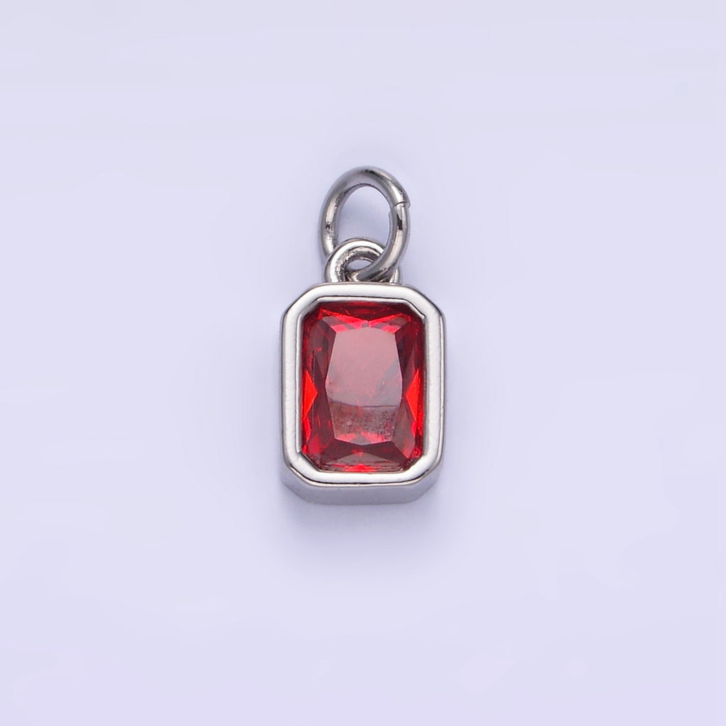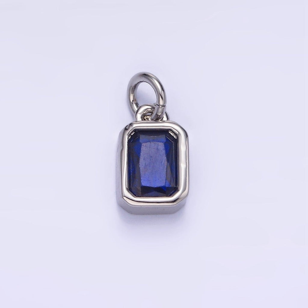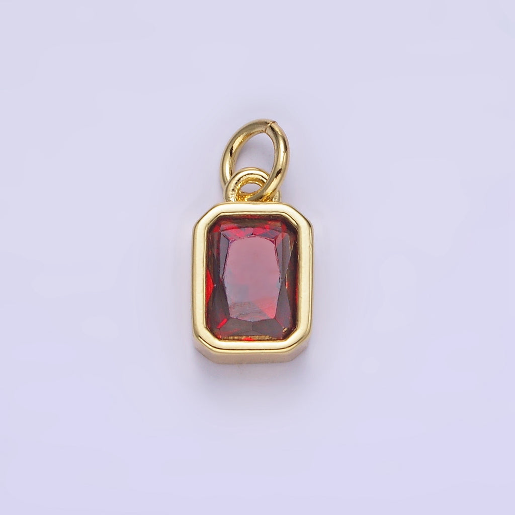 14K Gold Filled Birthstone CZ Baguette Bezel Charm in Gold & Silver | W721 - W728