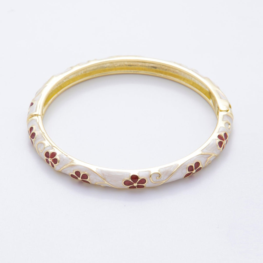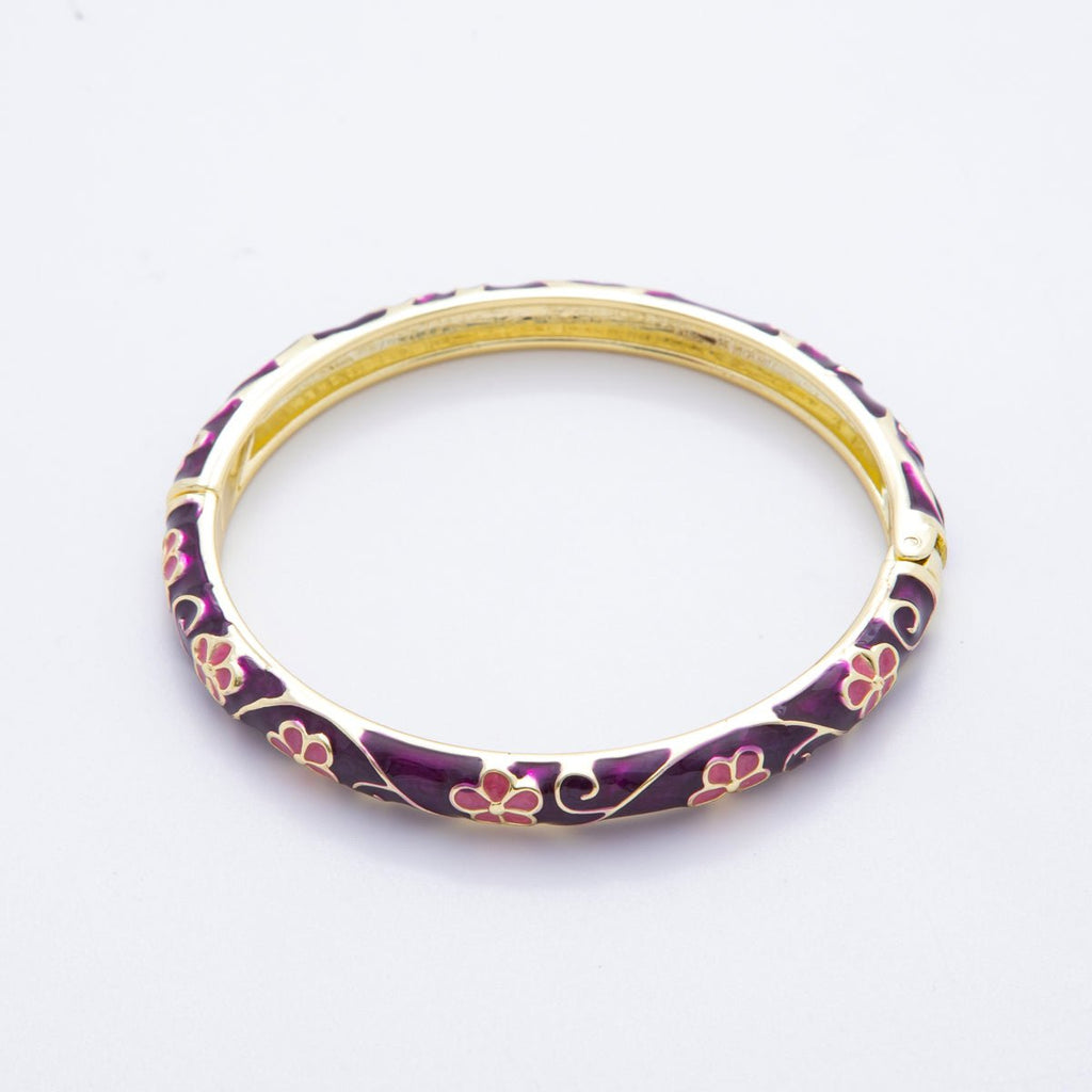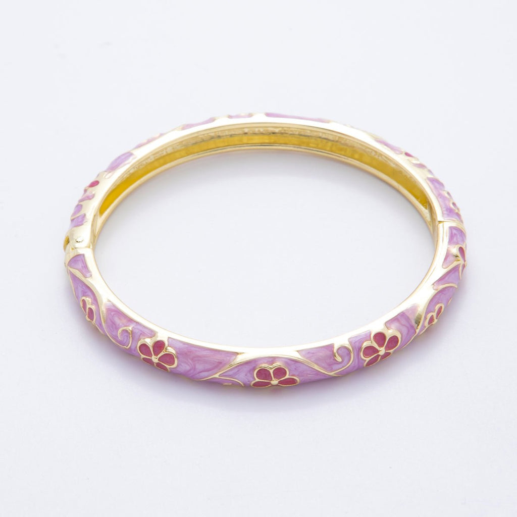 14K Gold Filled Enamel Artisan Floral Linked Open Round Bangle Bracelet in Purple, Pink, & White | WA-A3769 - WA-A3772