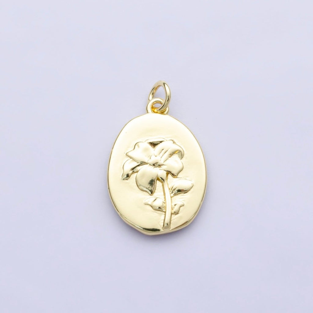 14K Gold Filled Marigold October Birth Flower Personalized Hammered Stamped Double Sided Charm | AG253
