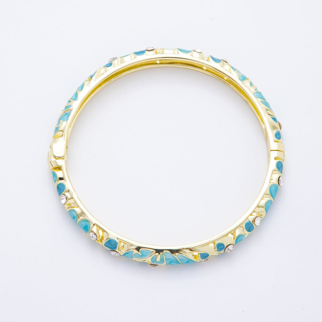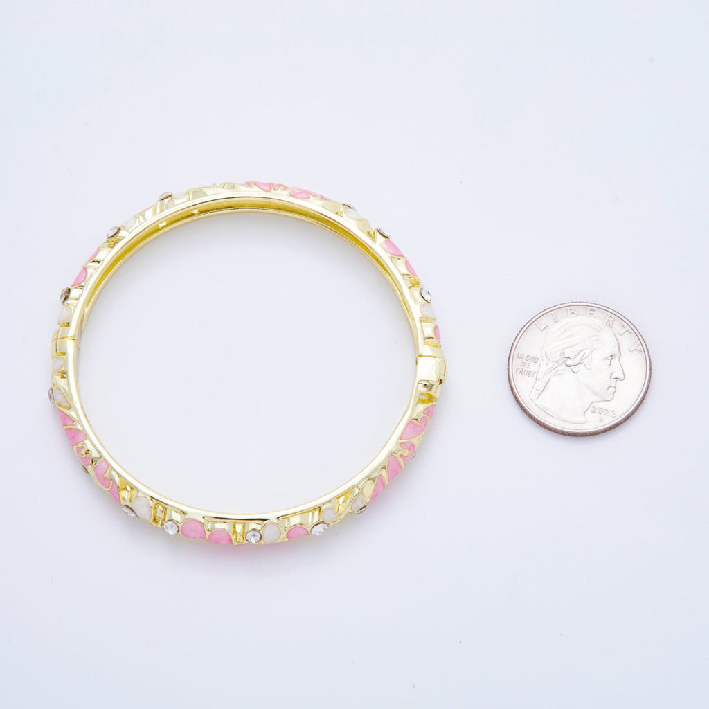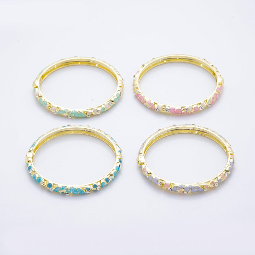 14K Gold Filled Micro Paved CZ Enamel Artisan Pastel Petal Open Round Bangle Bracelet in Purple, Blue, & Green | WA-A3622 - WA-A3625