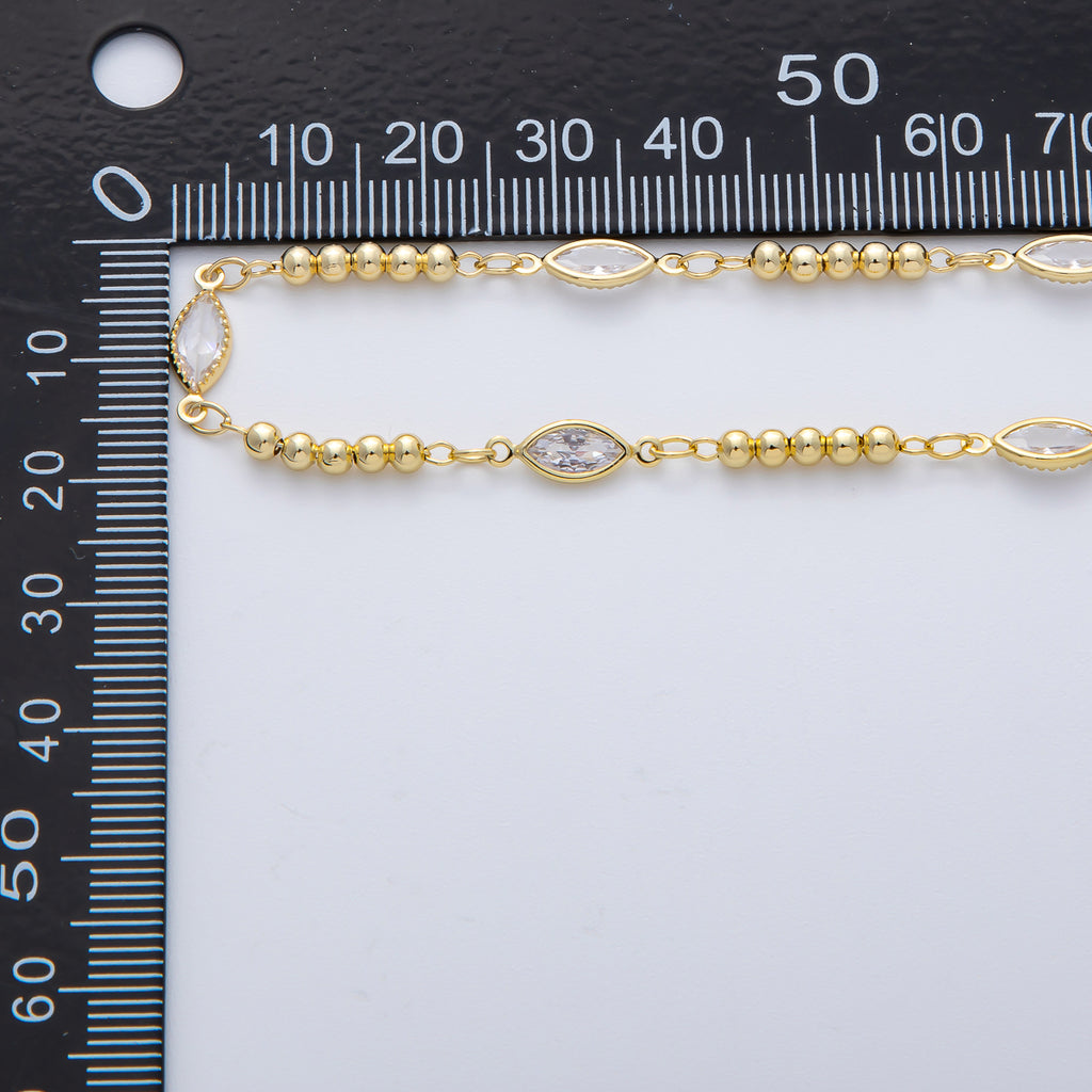 18K Gold Filled 3mm Clear Marquise CZ Bezel Bead Unfinished Chain by Yard | Roll-1775