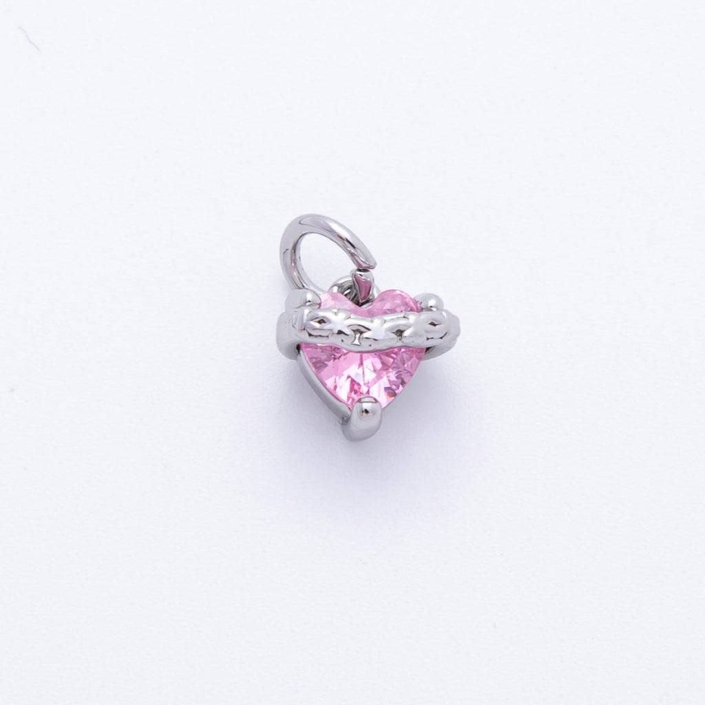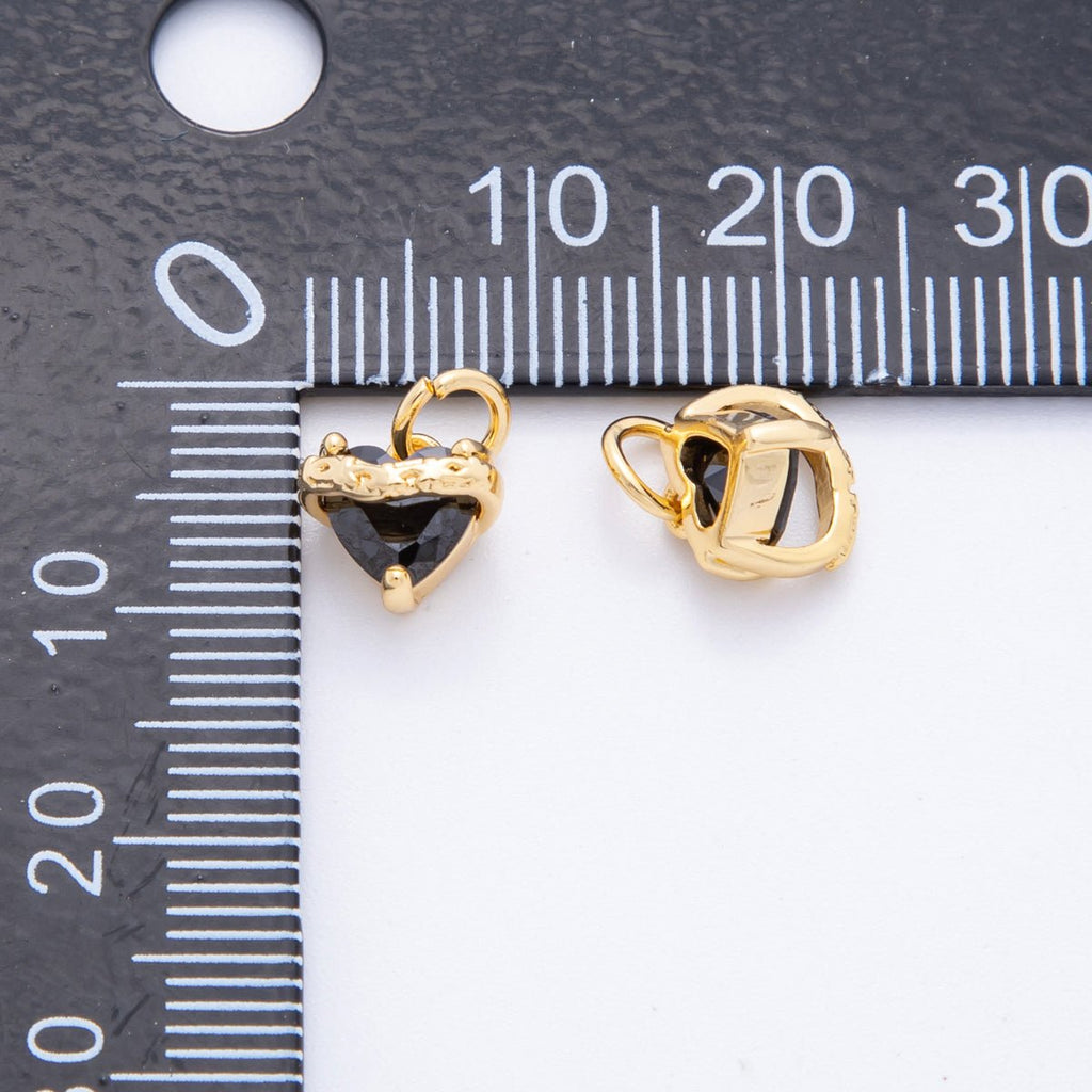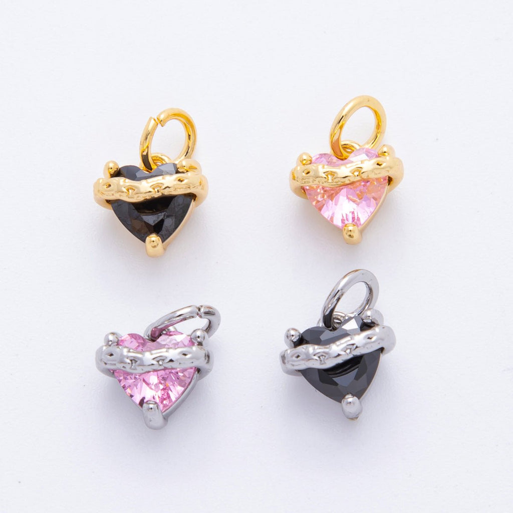 18K Gold Filled 11mm Pink & Black Heart-Shaped CZ Rustic Style Charm in Gold & Silver | C639 C702