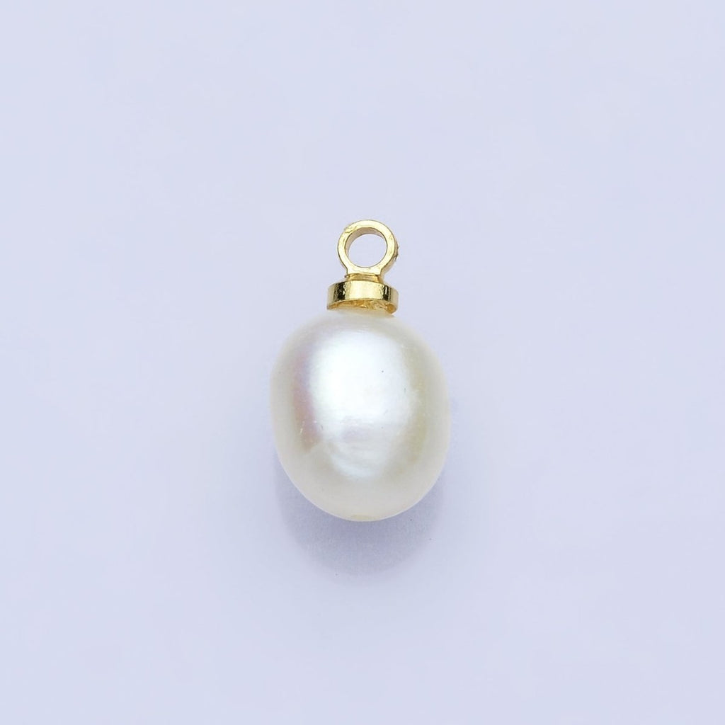 18K Gold Filled 12.5mm Shell Pearl Oval Button Charm | P1618